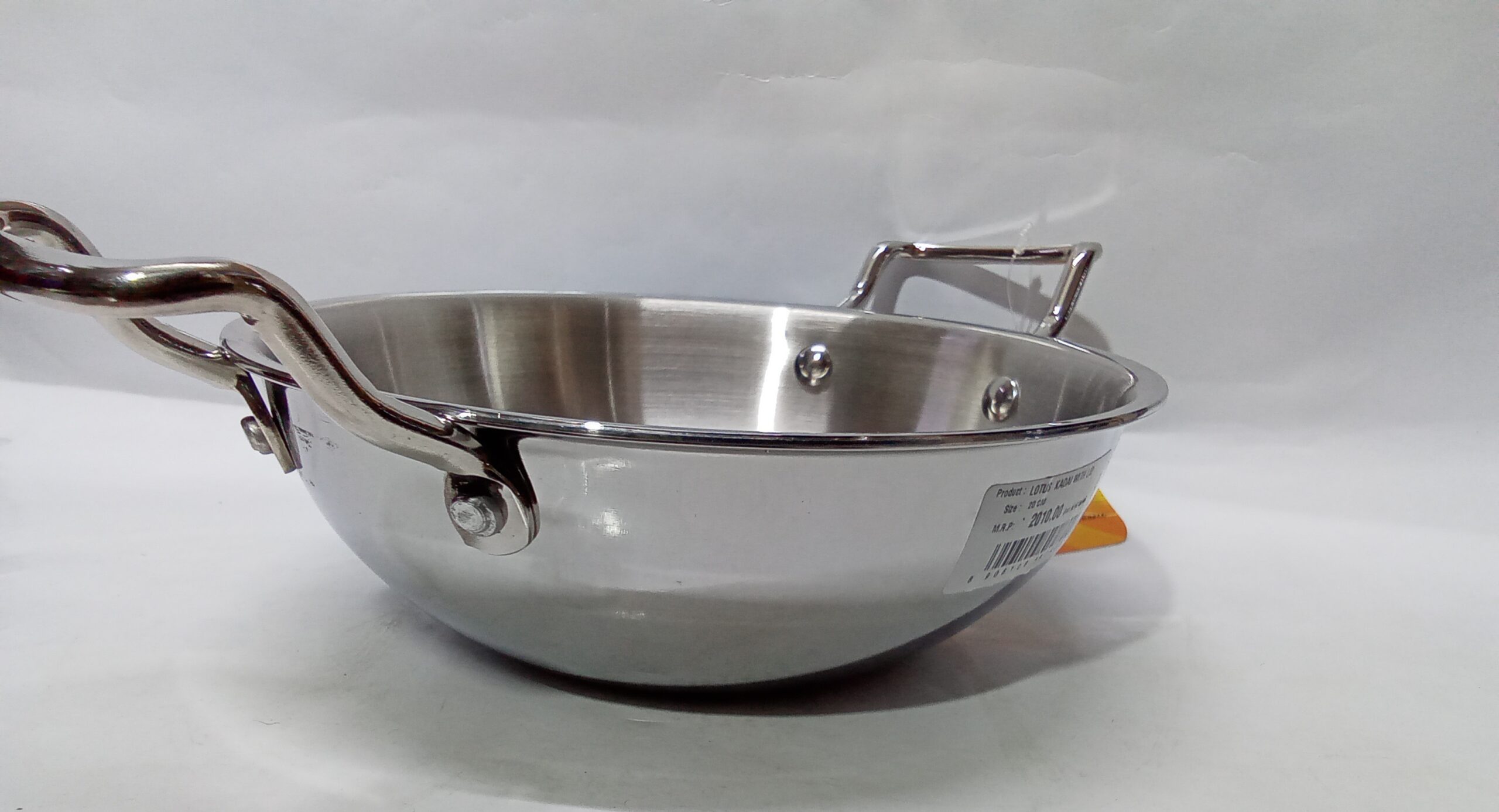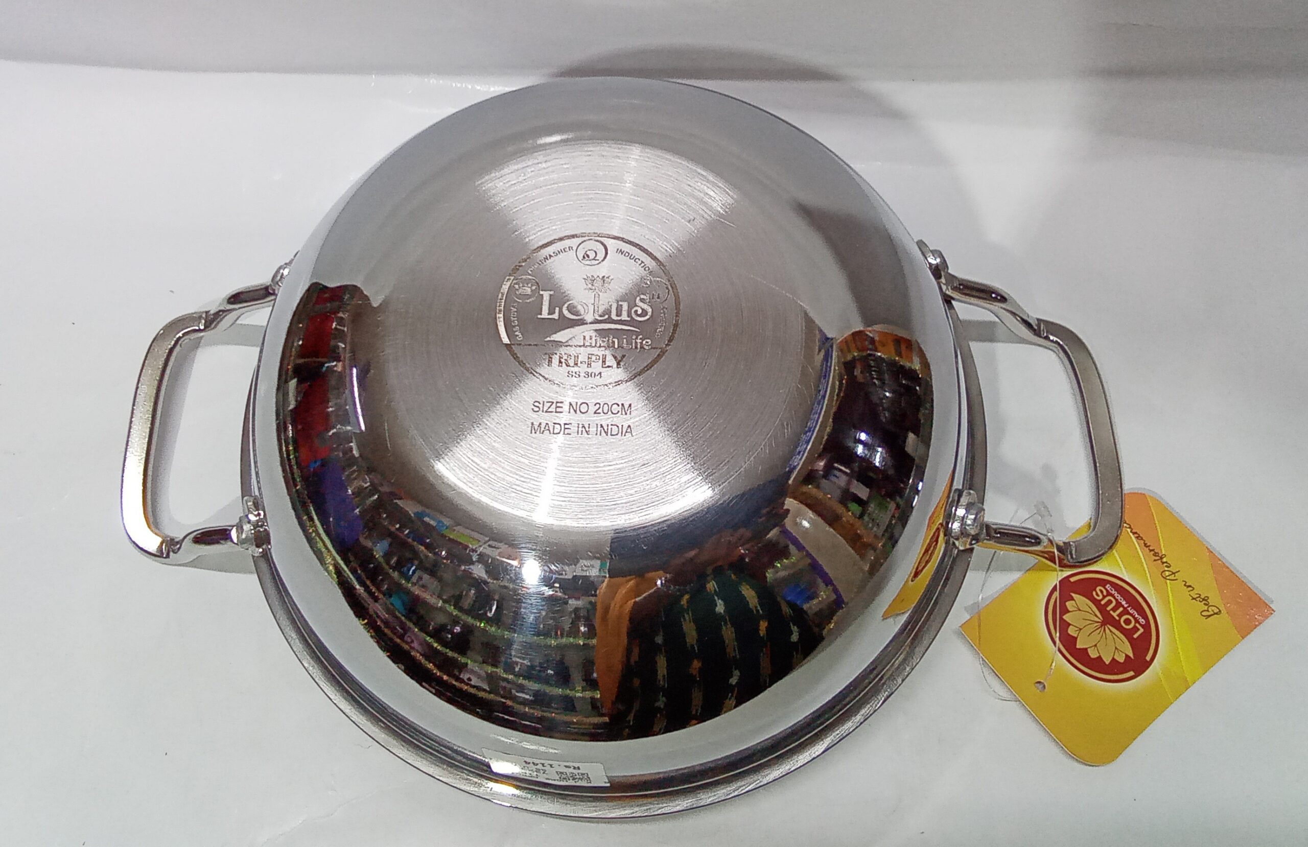 Cook with perfection in our Stainless Steel Triply Kadai Made with a tri-ply construction for excellent heat distribution, this kadai is perfect for a variety of cooking techniques. The stainless steel exterior ensures durability and easy cleaning.