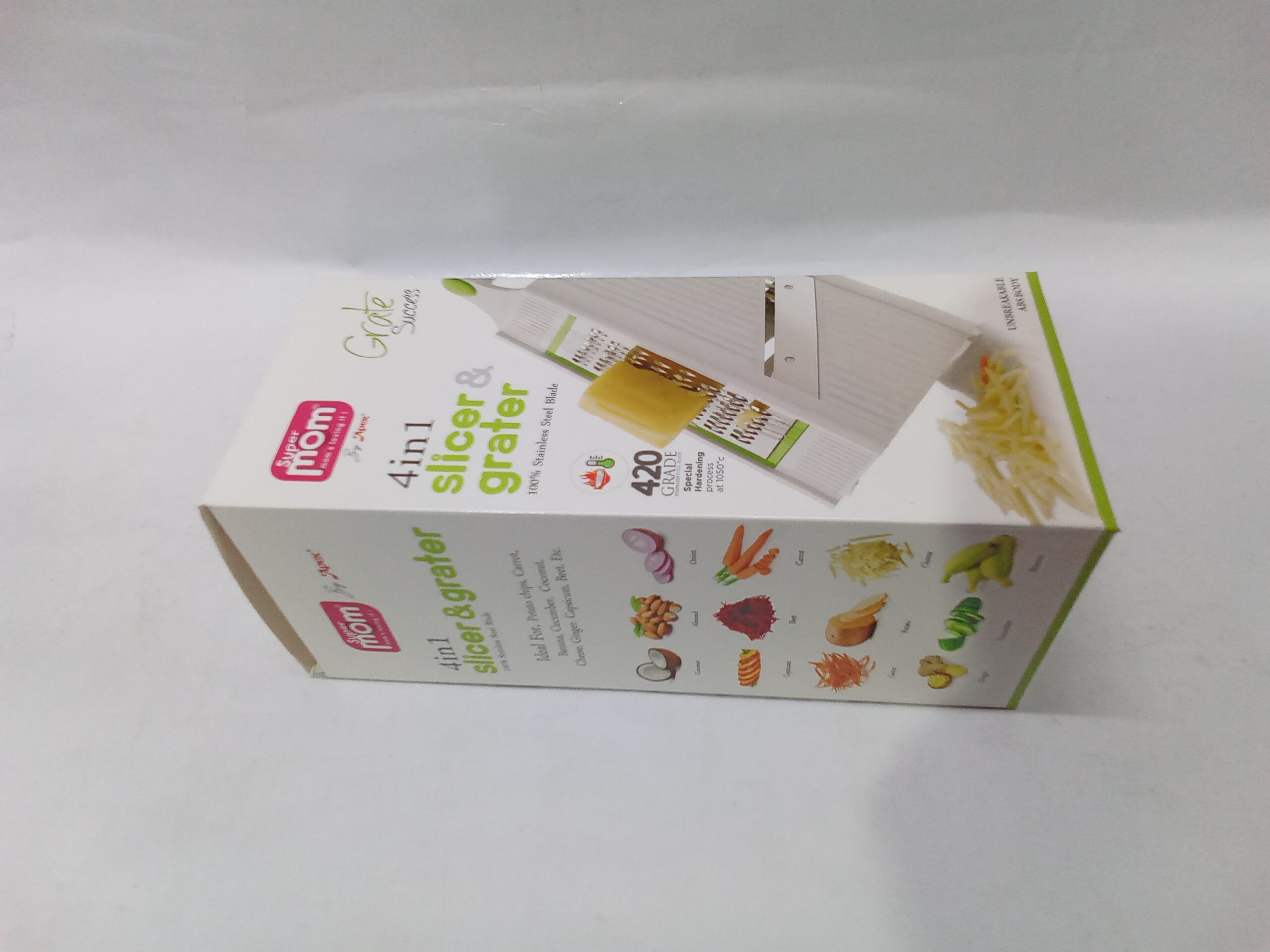 “Super Mom 4-in-1 slicer & grater” kitchen tool.