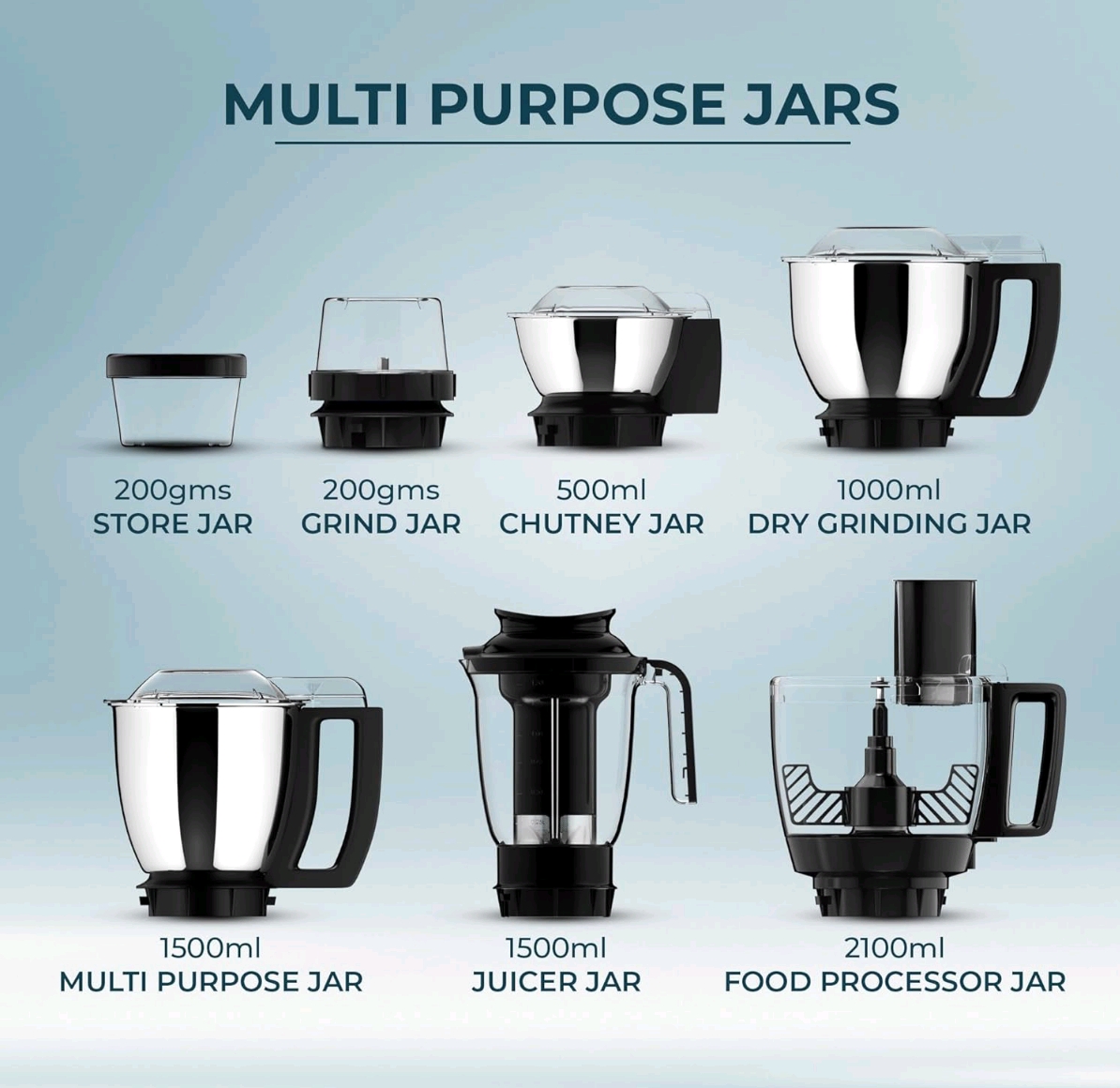 Versatility: Comes with multiple jars (stainless steel & polycarbonate) and 9 attachments for juicing, blending, chopping, slicing, grating, and kneading.