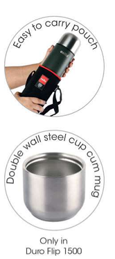 - Flip-Style Mouth And Cup Style Lid: To avoid the risk of spillage, Cello Flipstyle flask comes with a sturdy, leak-proof flip-top lid that makes drinking and pouring hassle free. Additionally, the main lid doubles as a convenient cup, providing a practical solution for enjoying your favorite beverages on the go. This flask comes with a stylish and functional jacket or pouch that not only adds an extra layer of insulation but also provides a convenient carrying solution.