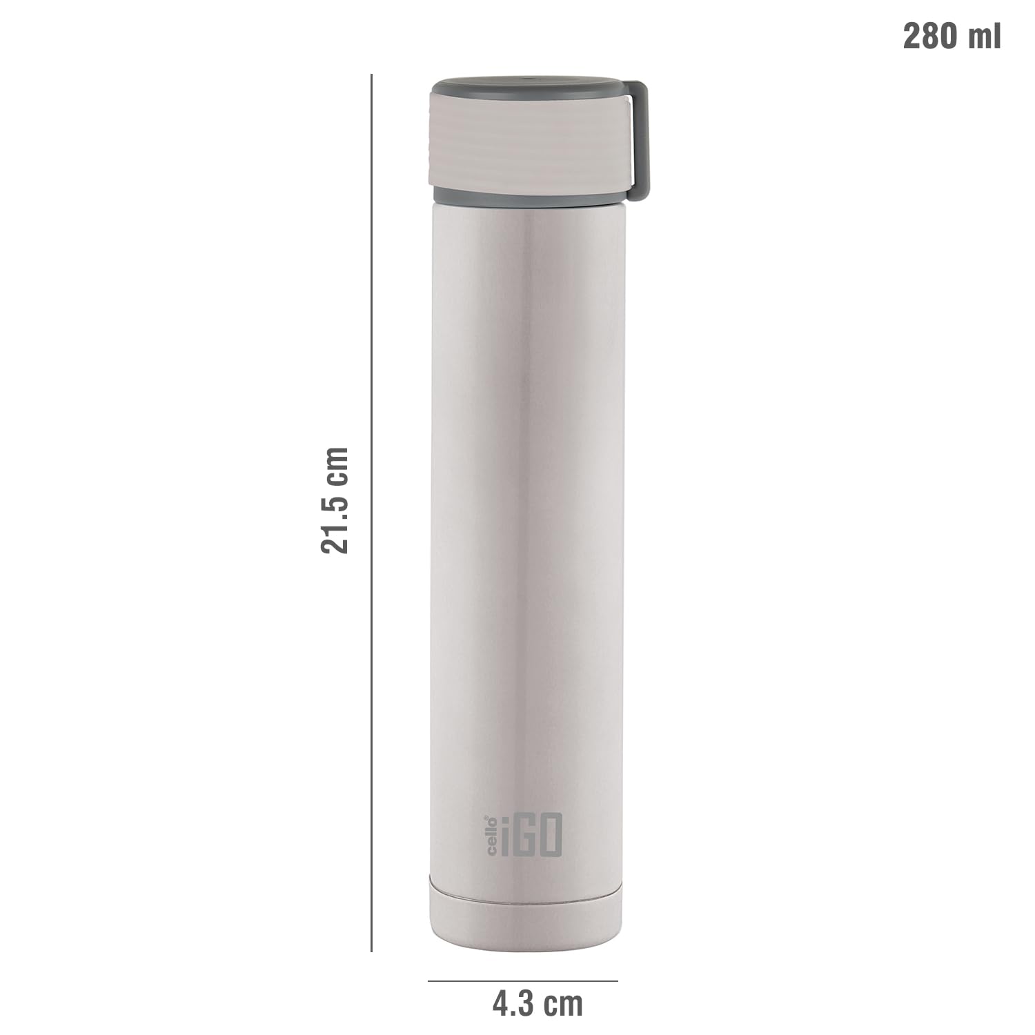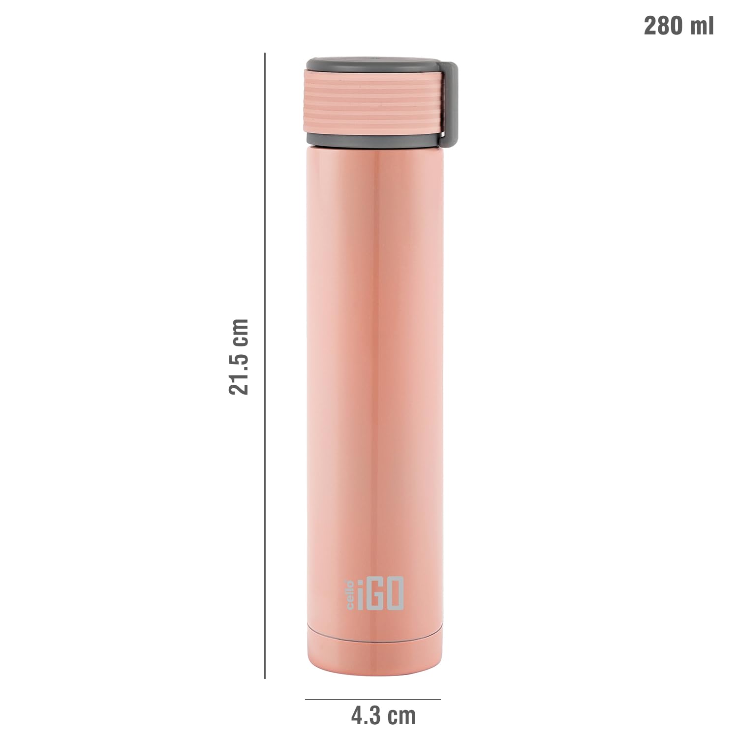 Cello iGo Stainless Steel Double Walled Insulated Flask | Leak Proof Flask for Beverages | Thermo Seal Technology | Ideal for Home, Travel, Office | 280ml, Purple,White,pink