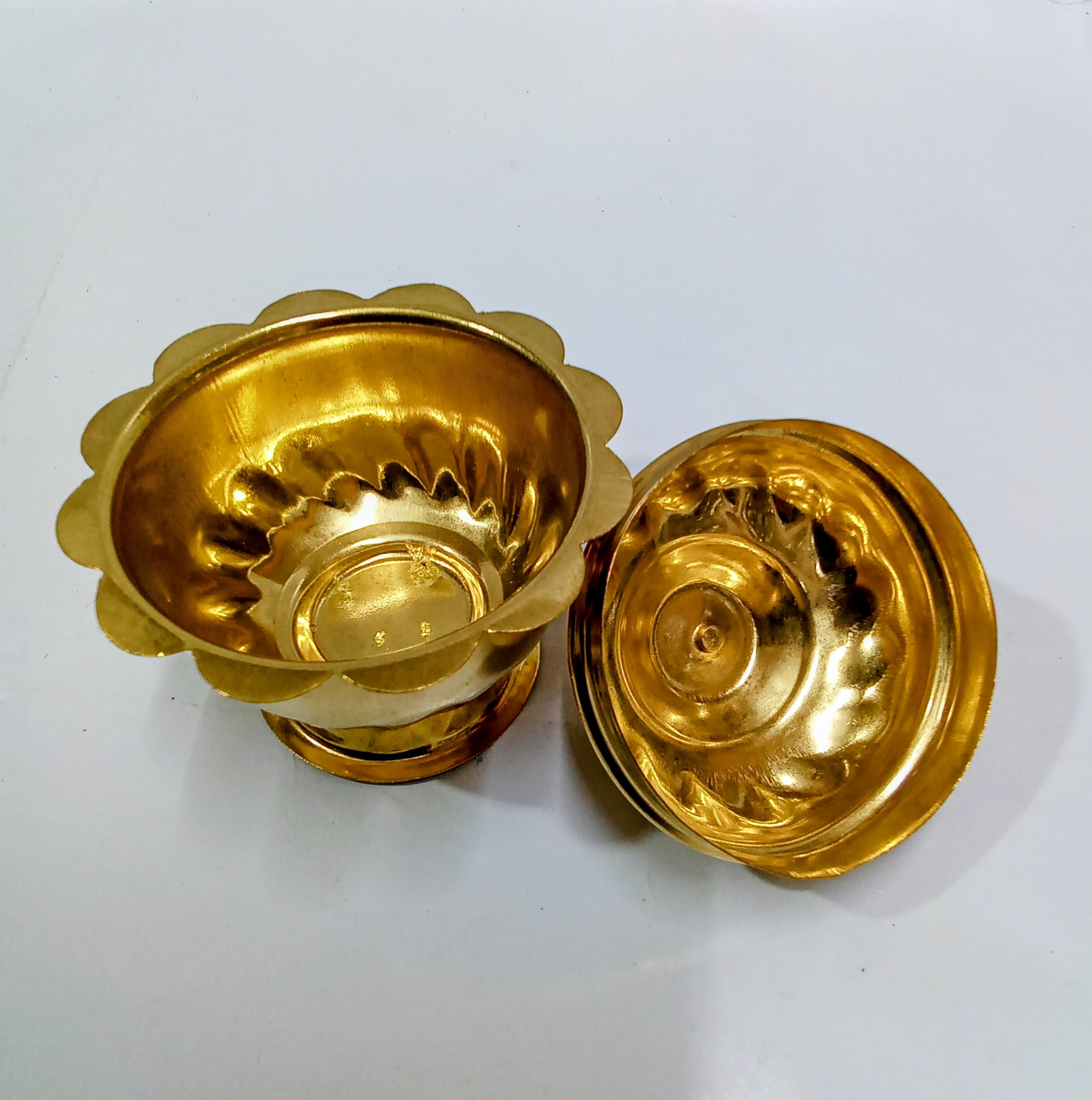 Traditional Brass Kumkum Simil for your Sacred Space. Keep your Kumkum and Haldi fresh and organized in this beautifully polished brass Sindoor box. Featuring a weighted base for stability and an elegant traditional design.