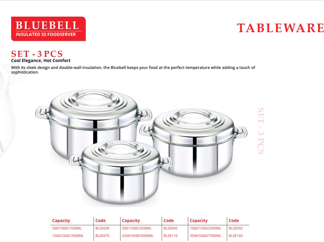 - Functionality: Keeps food warm and fresh, ideal for serving chapati, rice, or curries.