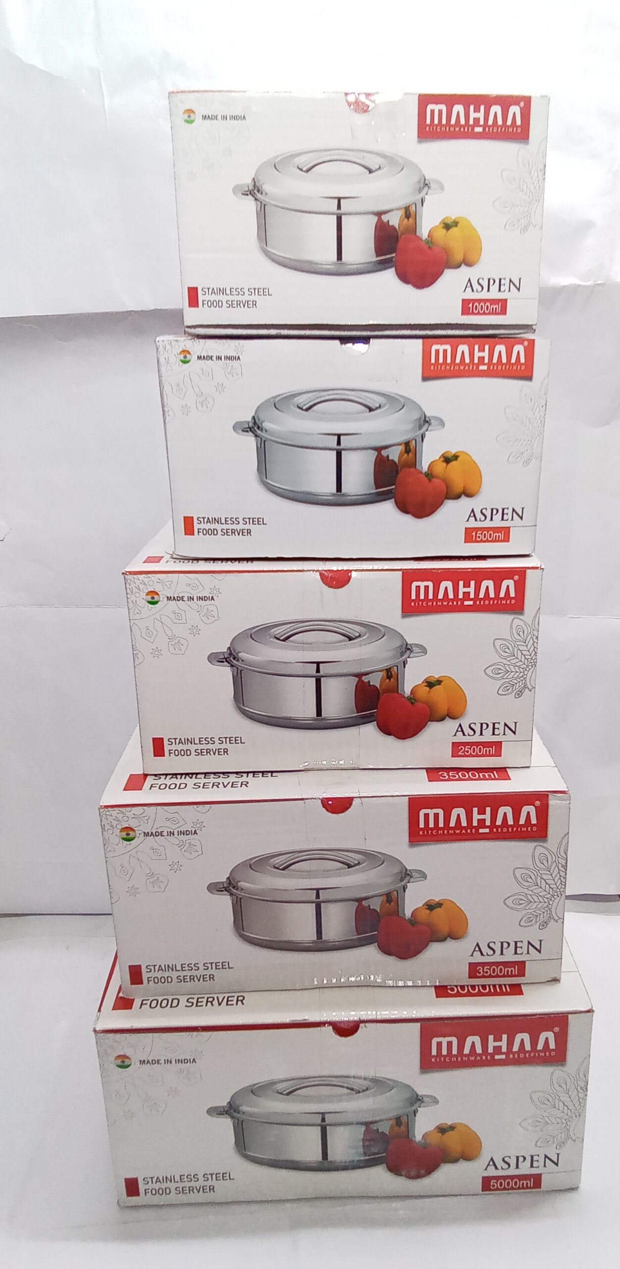 MAHAA HOT BOX 5 PCS SET(1000ML,1500ML,2500ML,3500ML,5000ML)