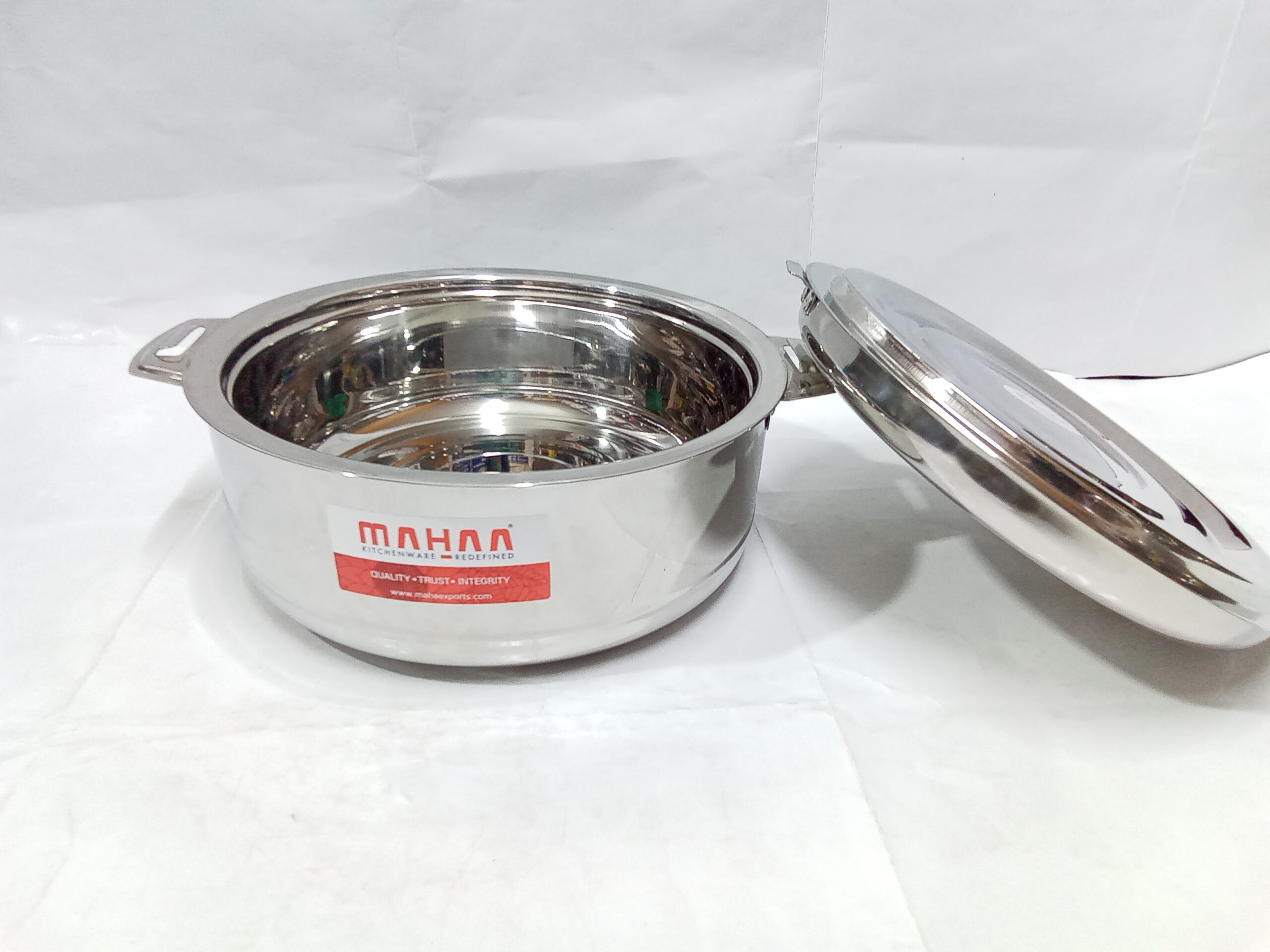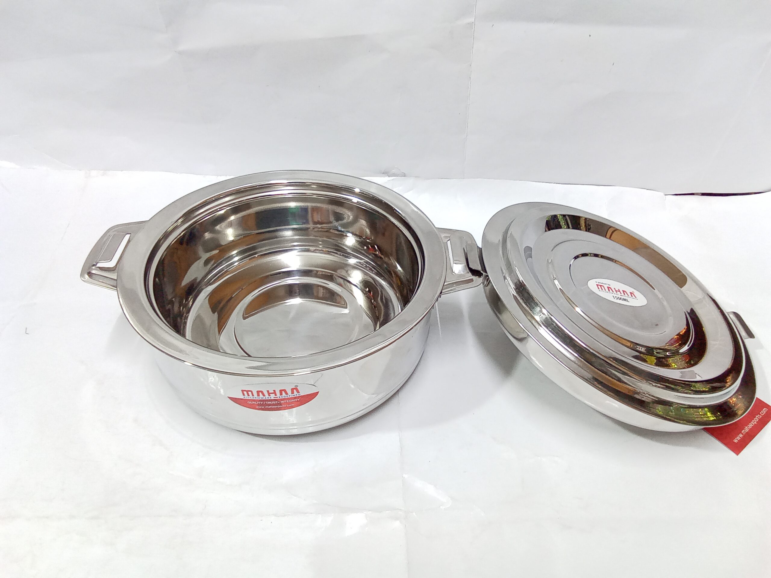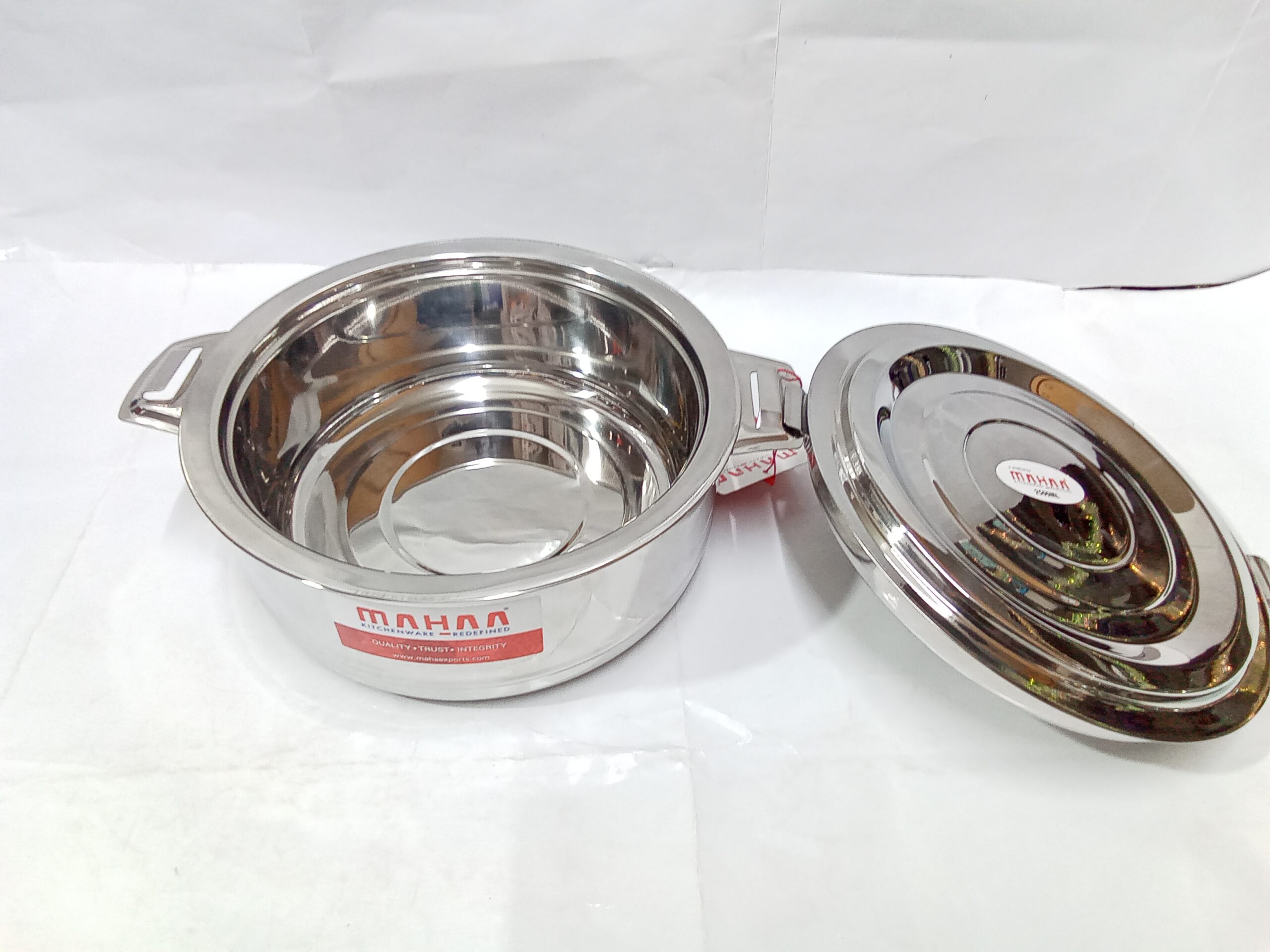 Mahaa Stainless Steel Aspen Casseroles. These are double-walled, insulated hot pots designed to keep food warm and fresh for several hours.