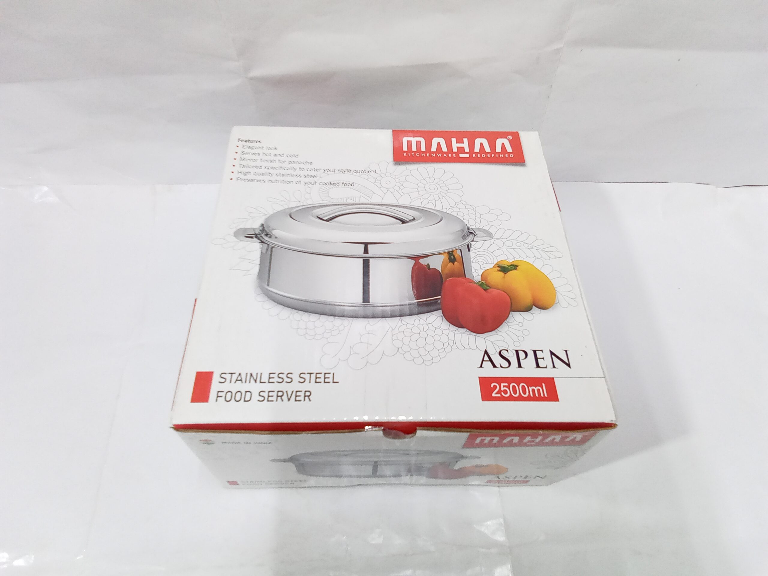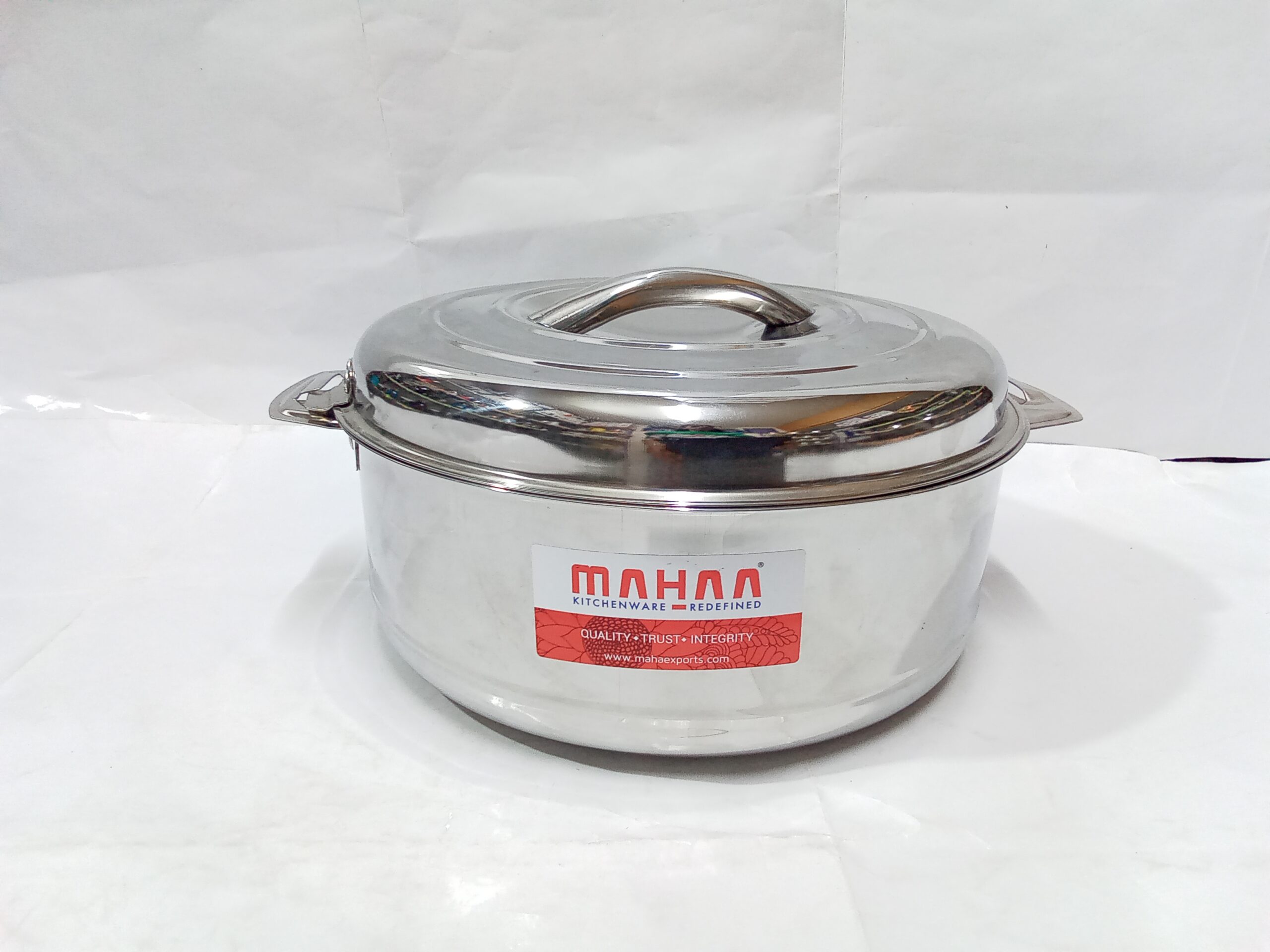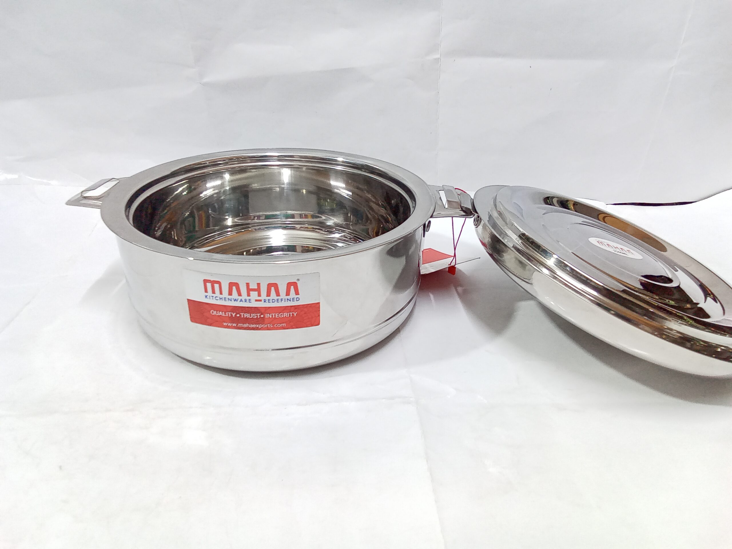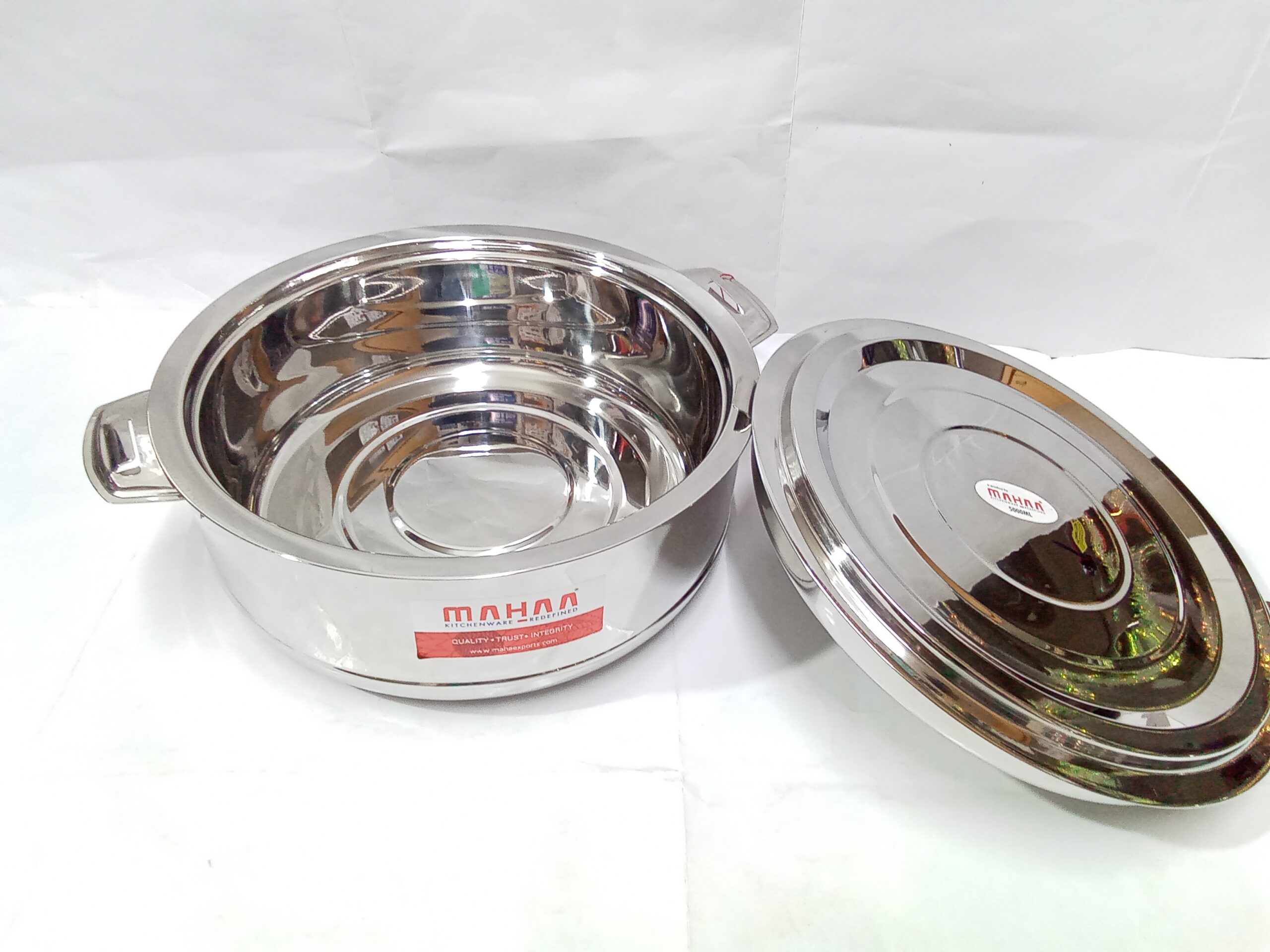 Mahaa Stainless Steel Aspen Casseroles. These are double-walled, insulated hot pots designed to keep food warm and fresh for several hours.