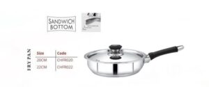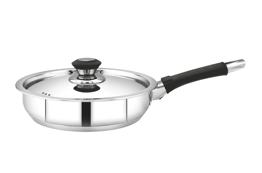 Mahaa Chroma stainless steel fry pan with a lid.ย