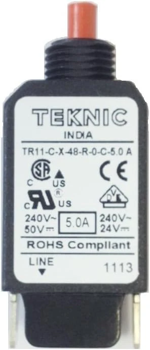 Operation: Manual reset functionality. Once the motor cools down (typically after 15-20 minutes), the user presses the button to restore power.