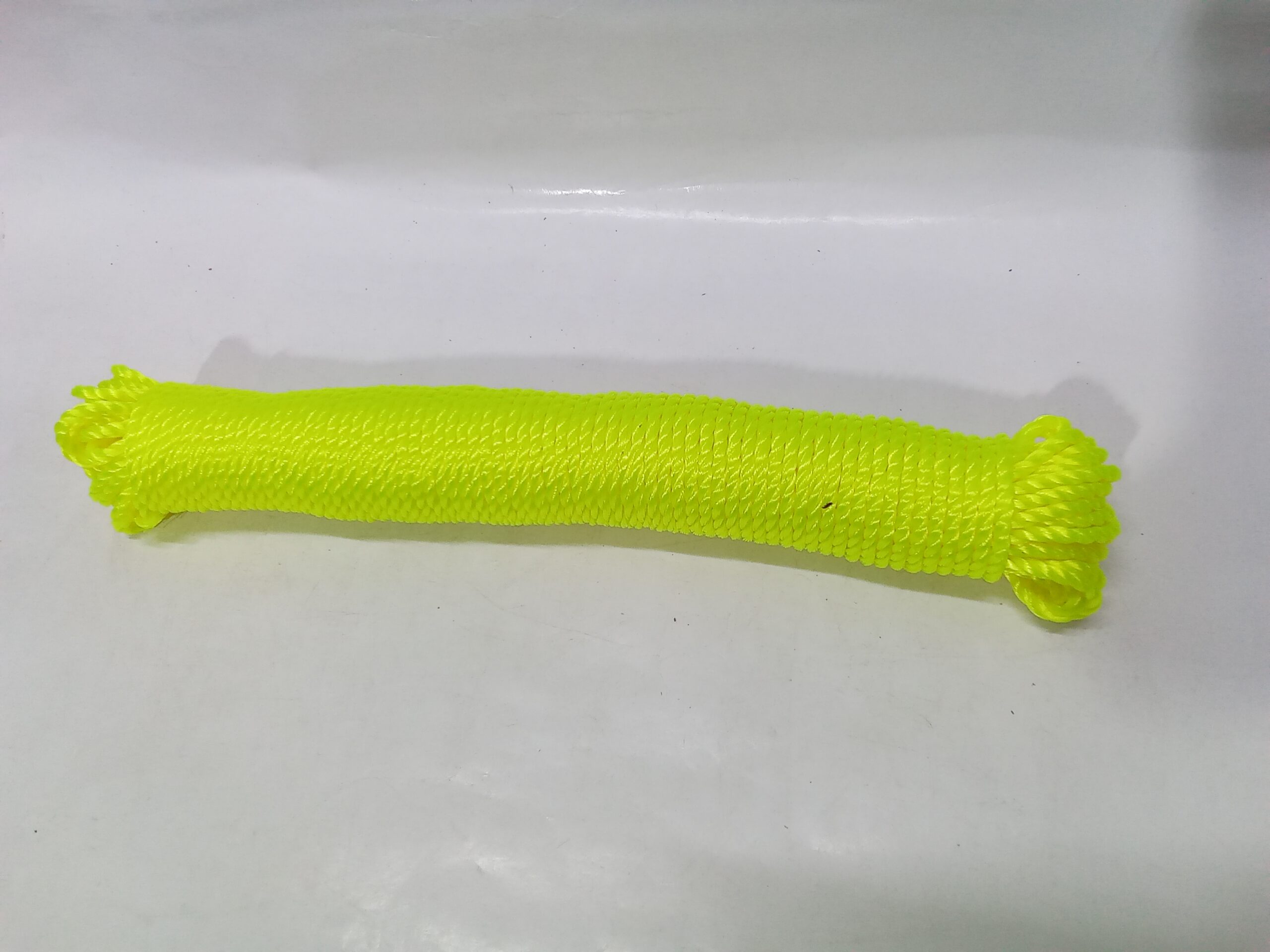 coil of brightย  nylon or plastic rope, commonly used as a clothesline.ย