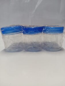 Vibrant Blue Screw-Top Lids: Features easy-grip, threaded lids in a striking blue color that ensures a secure, leak-resistant seal for dry or semi-liquid contents.