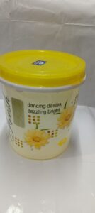 Snap-Secure Lid: Equipped with a bright yellow, heavy-duty lid that snaps firmly onto the reinforced rim to keep contents protected from dust and moisture.