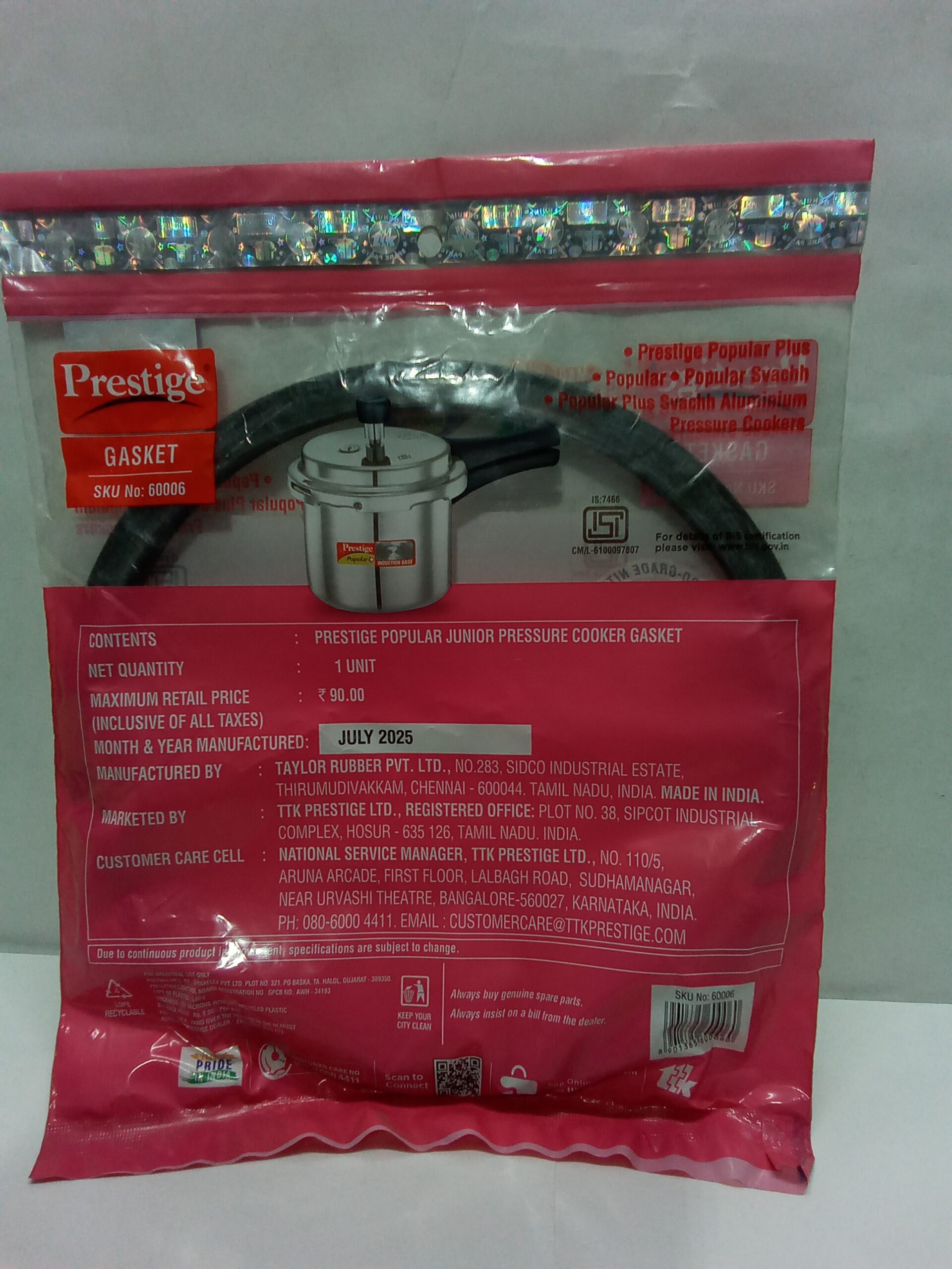 Original Fitment: Designed specifically for the Prestige Popular Junior series to ensure no steam leakage from the rim.