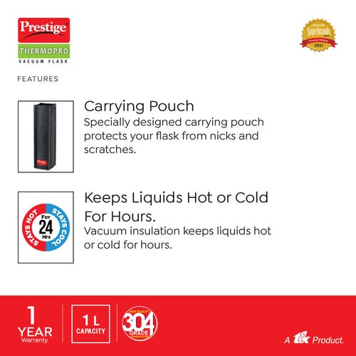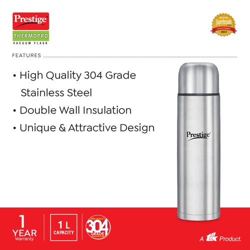 Prestige Thermopro PFSL 4 Stainless Steel Vacuum Flask, 1 L (Silver)