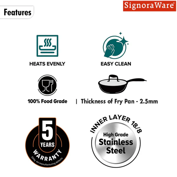 - Lasts a lifetime: Handcrafted in our factory, our Signoraware is made using ultra-durable stainless steel which is made in India that wonโt warp or tarnish, so itโll cook like new for years.