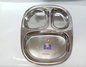 Our Stainless Steel Bojan Plate is perfect for serving meals with ease. Made from high-quality stainless steel, it features multiple compartments for organizing different food portions. The design includes one large central compartment and smaller compartments for sides or accompaniments.Extra deep plate.