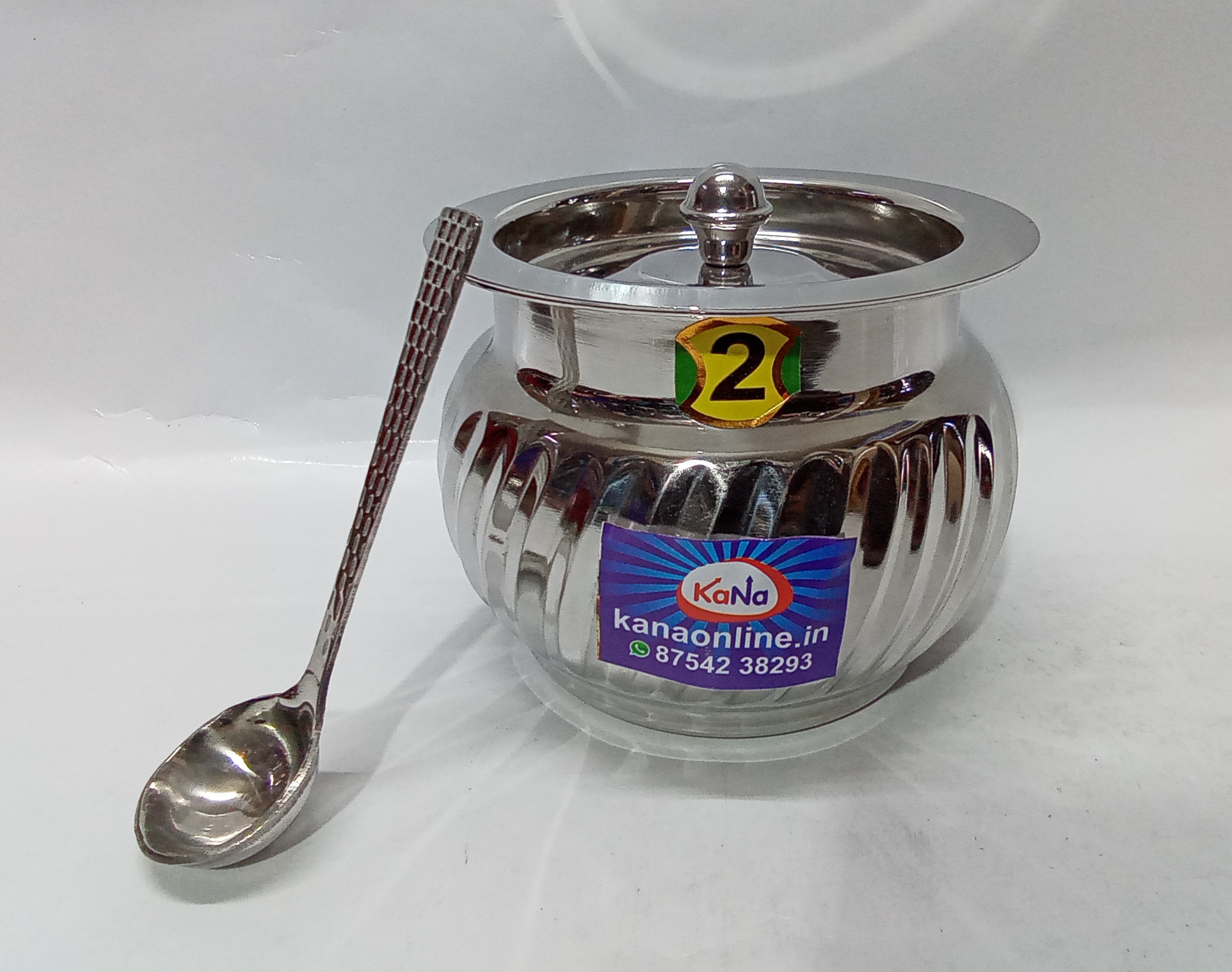 Store and serve ghee with ease in our Stainless Steel Ghee Potย  Made fromย  ย high quality stainless steel, this pot is designed to preserve the freshness and flavor of your ghee. The airtight design ensures that your ghee stays pure and contamination free.