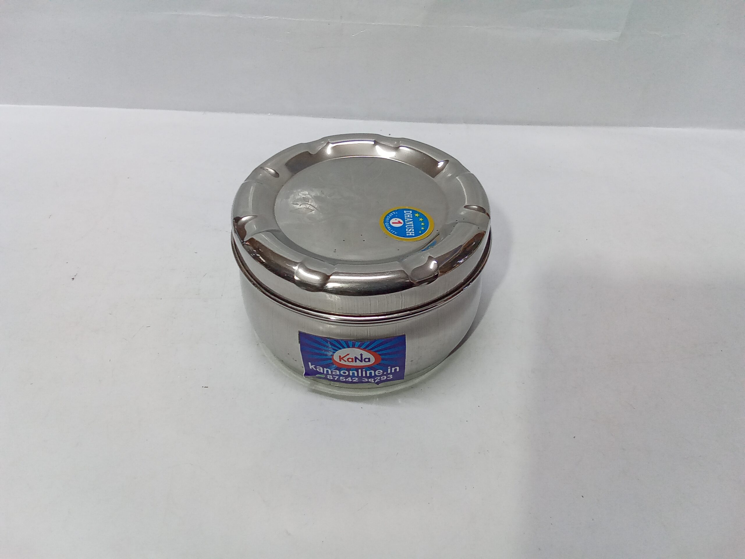 stainless steel lunch box or tiffin box,also known as a poori dabba or roti dabba.Â