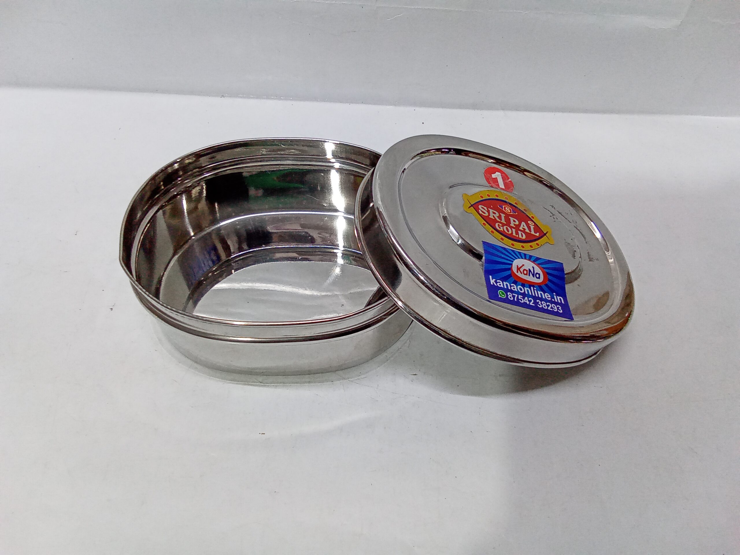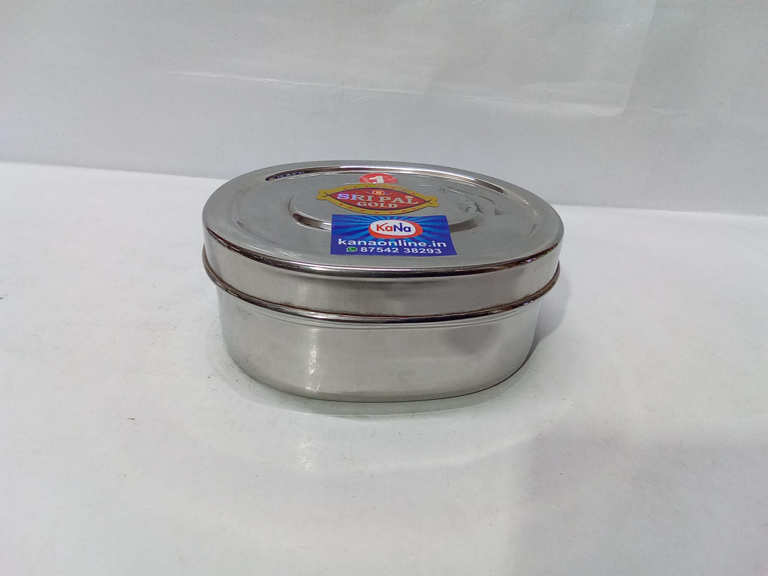 stainless steel flat lunch box (oval) puri or chapati dabba.