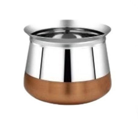 - Even Heat Distribution:ย The copper base enhances heat conductivity, allowing for faster cooking and fuel efficiency compared to plain steel pots.