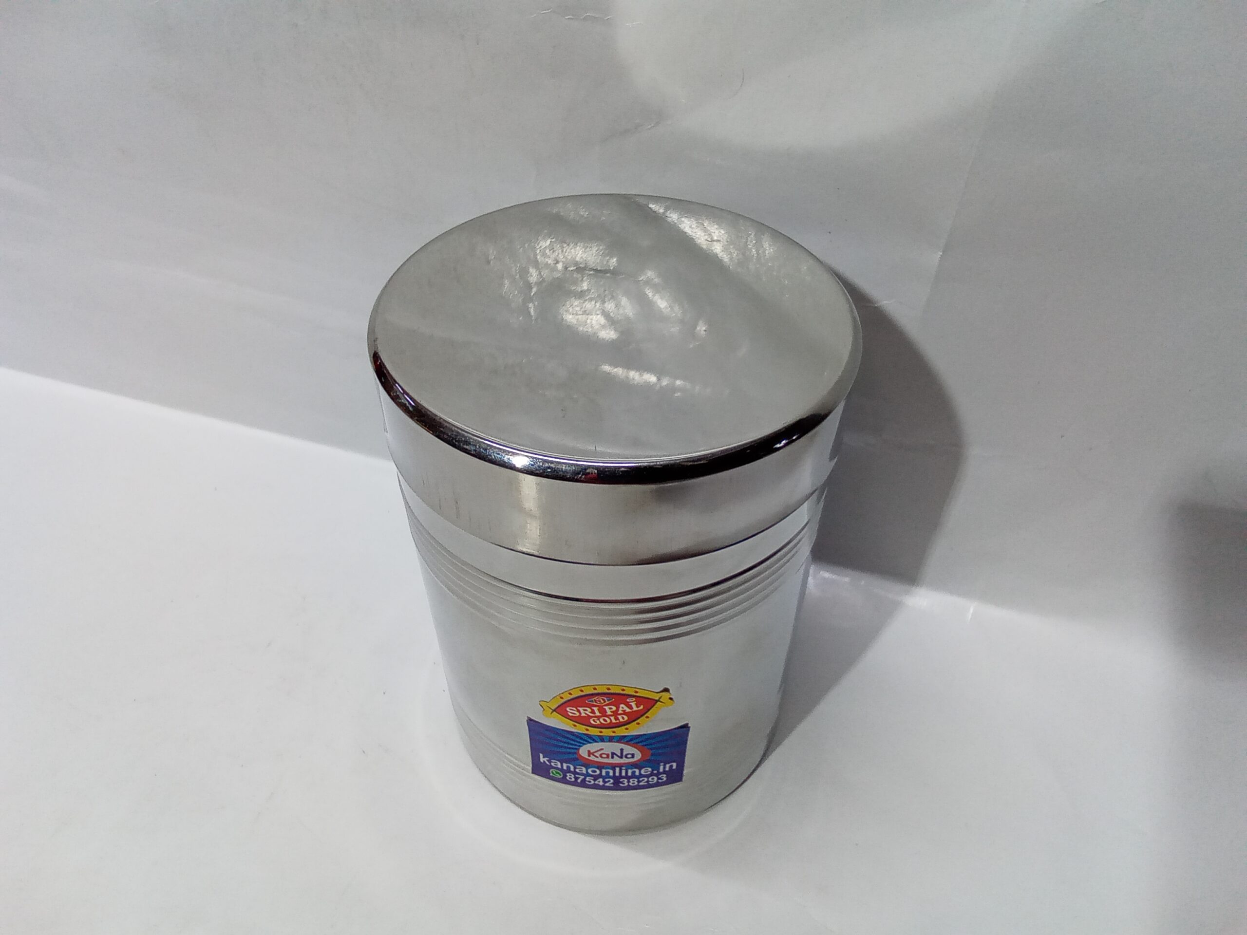 stainless steel storage container . These types of containers, often called “dabbas” or canisters in India, are widely used for kitchen storage of dry goods like spices, grains, and snacks.