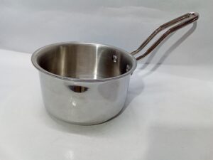 Cook with precision in our Stainless Steel Sauce Pan Made from high-quality stainless steel, this sauce pan is perfect for heating sauces, melting butter, and cooking delicate dishes. Its durable construction ensures even heat distribution and easy cleaning.