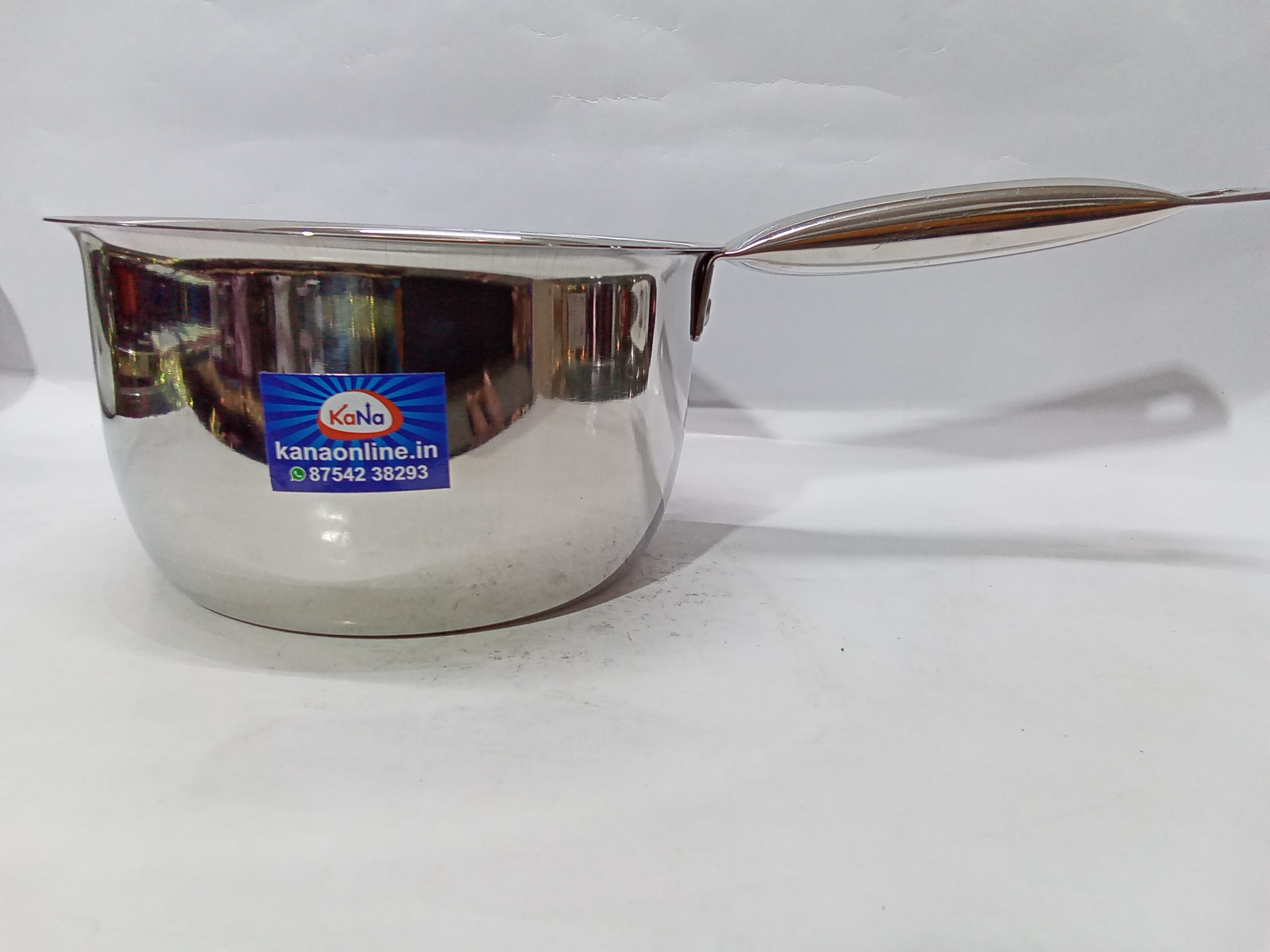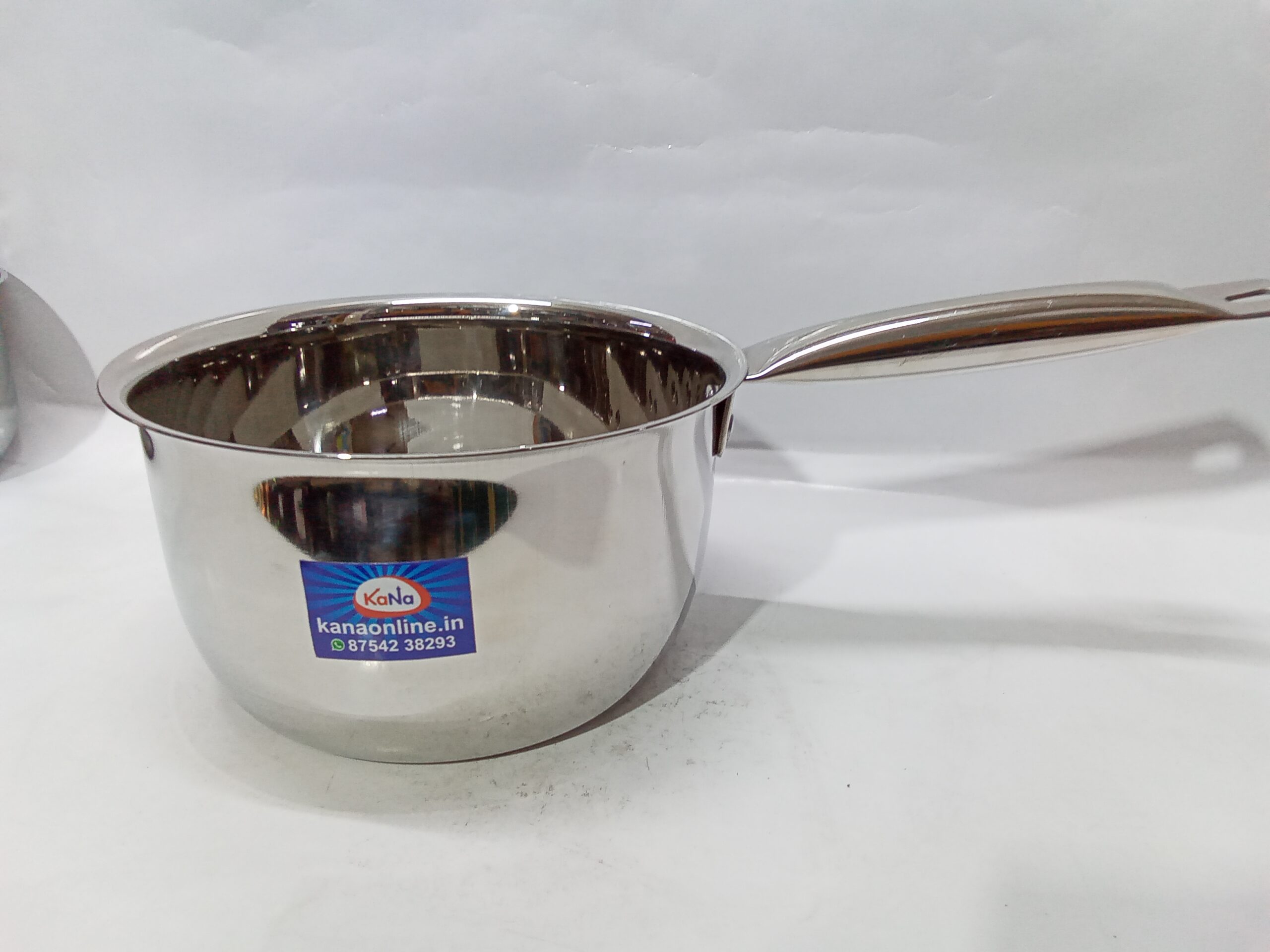 Cook with precision in our Stainless Steel Sauce Pan Made from high-quality stainless steel, this sauce pan is perfect for heating sauces, melting butter, and cooking delicate dishes. Its durable construction ensures even heat distribution and easy cleaning.