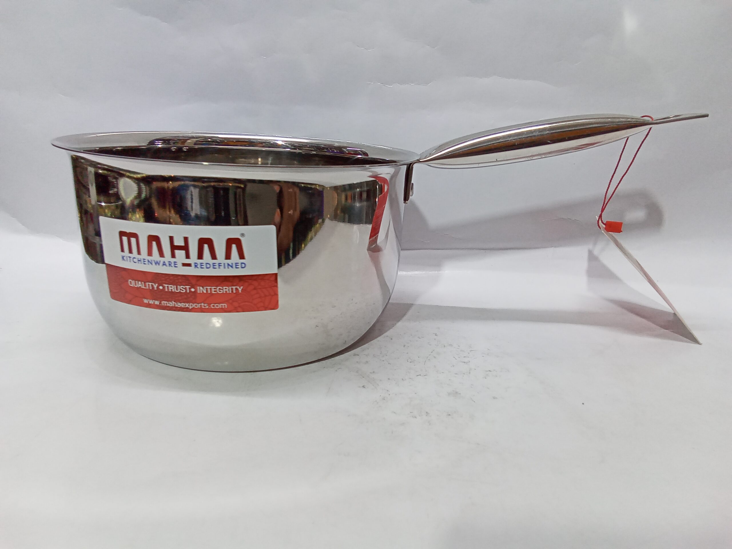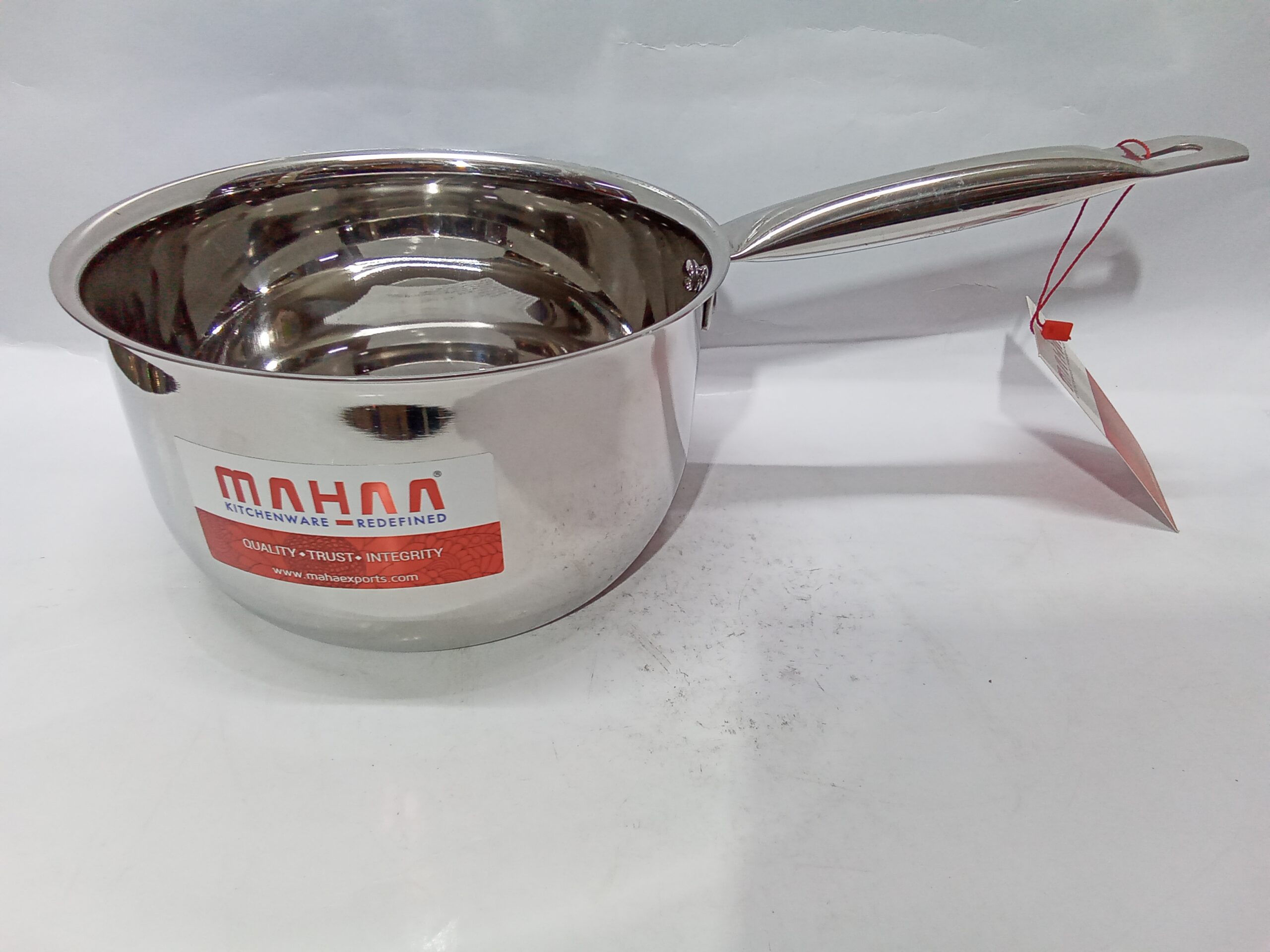 Cook with precision in our Stainless Steel Sauce Pan Made from high-quality stainless steel, this sauce pan is perfect for heating sauces, melting butter, and cooking delicate dishes. Its durable construction ensures even heat distribution and easy cleaning.