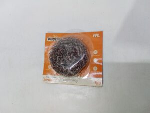 stainless steel scrubber. This type of scrubber is a common cleaning tool used for tackling tough stains on various surfaces, particularly in kitchens.Â