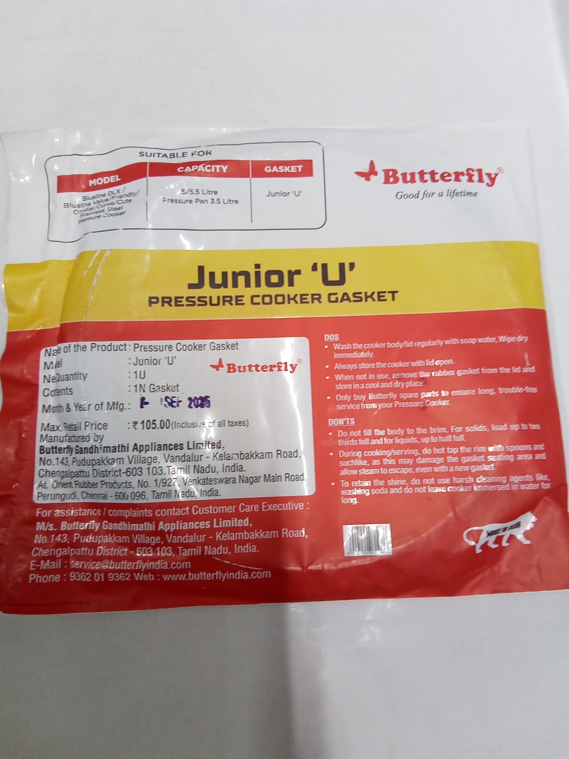 Precision ‘U’ Profile: Specifically molded with the ‘U’ shape design to fit perfectly into the lid grooves of Butterfly Junior models, preventing steam leakage.
