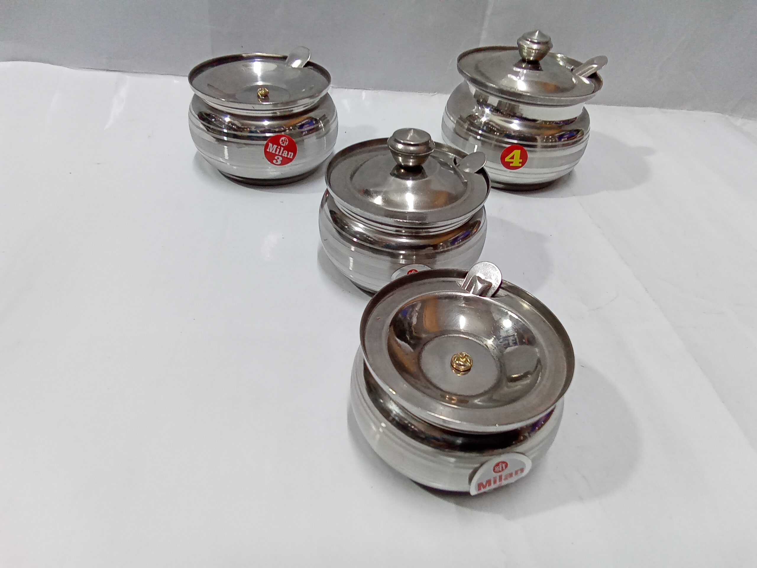 Organize your kitchen with our high-quality Stainless Steel Ghee Pot, specifically designed for smaller, daily-use portions. This durable container is an essential for every Indian household, providing a clean and elegant way to store ghee, oil, or butter right on your dining table or kitchen counter.