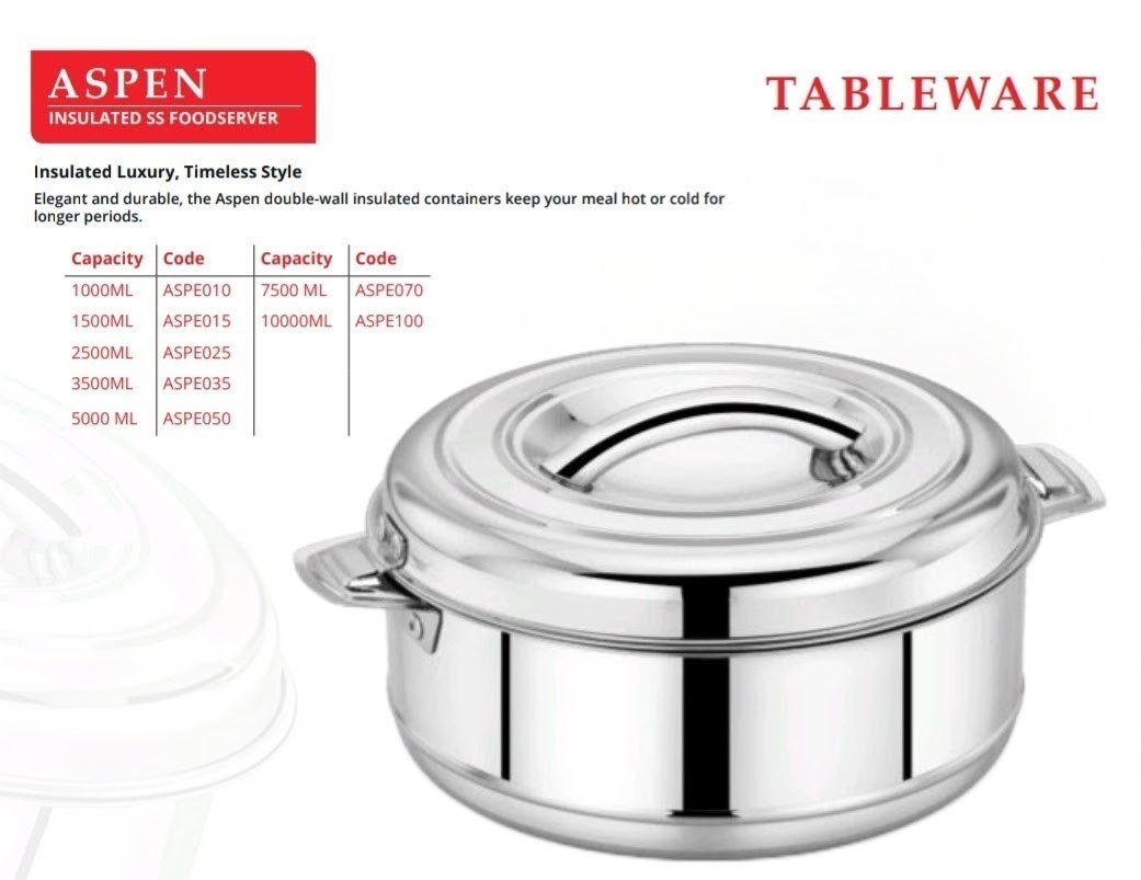 - Design & Capacity: Features a sleek silver finish with durable, comfortable Bakelite handles. Available in various sizes, including 1000 ml, 1500 ml, 2500 ml, 3500 ml, and 5000 ml.
