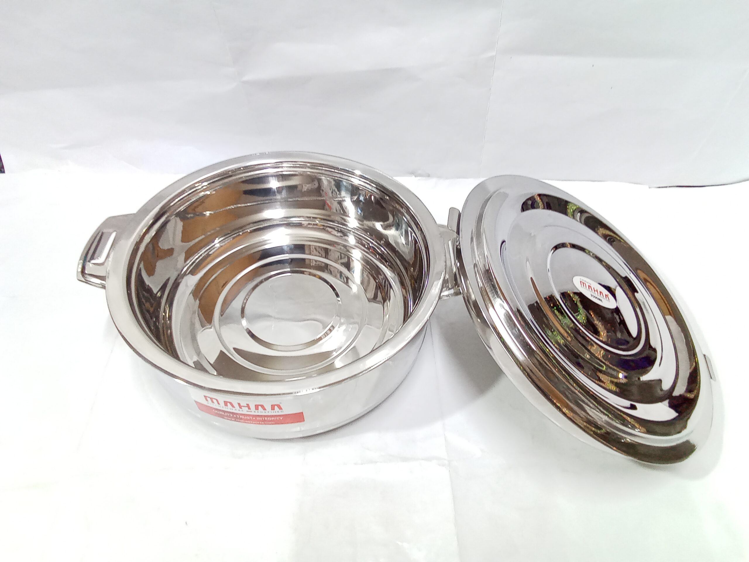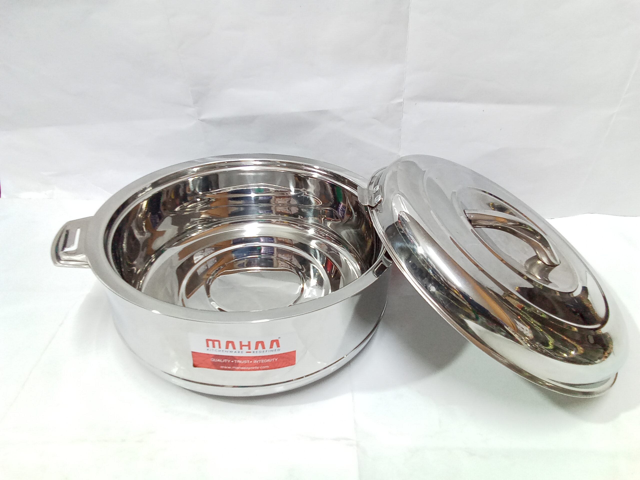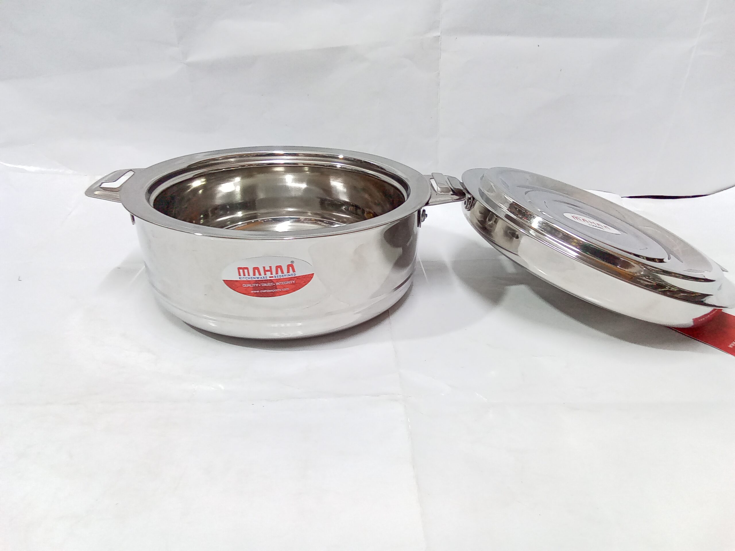 Mahaa Stainless Steel Aspen Casseroles. These are double-walled, insulated hot pots designed to keep food warm and fresh for several hours.