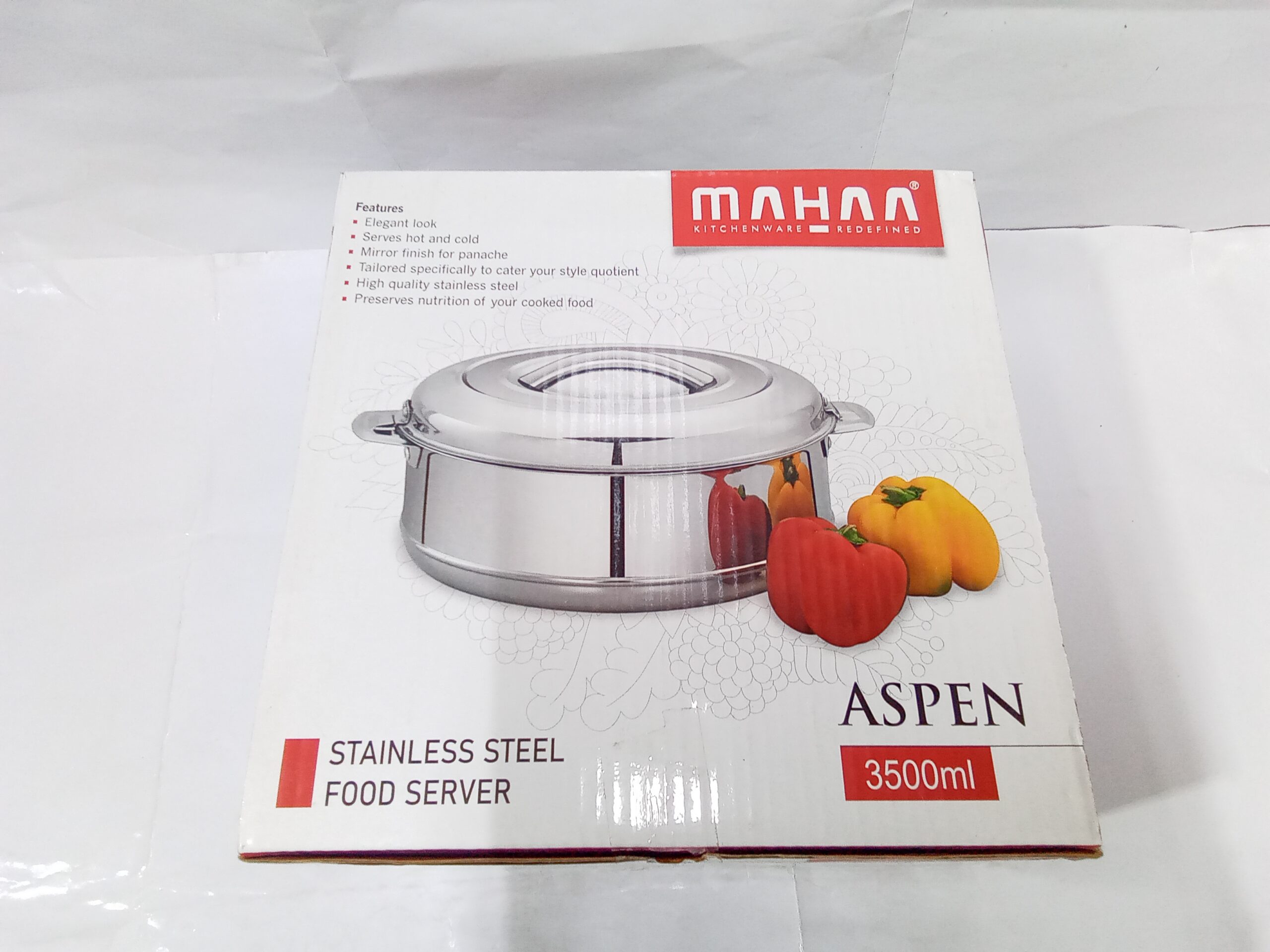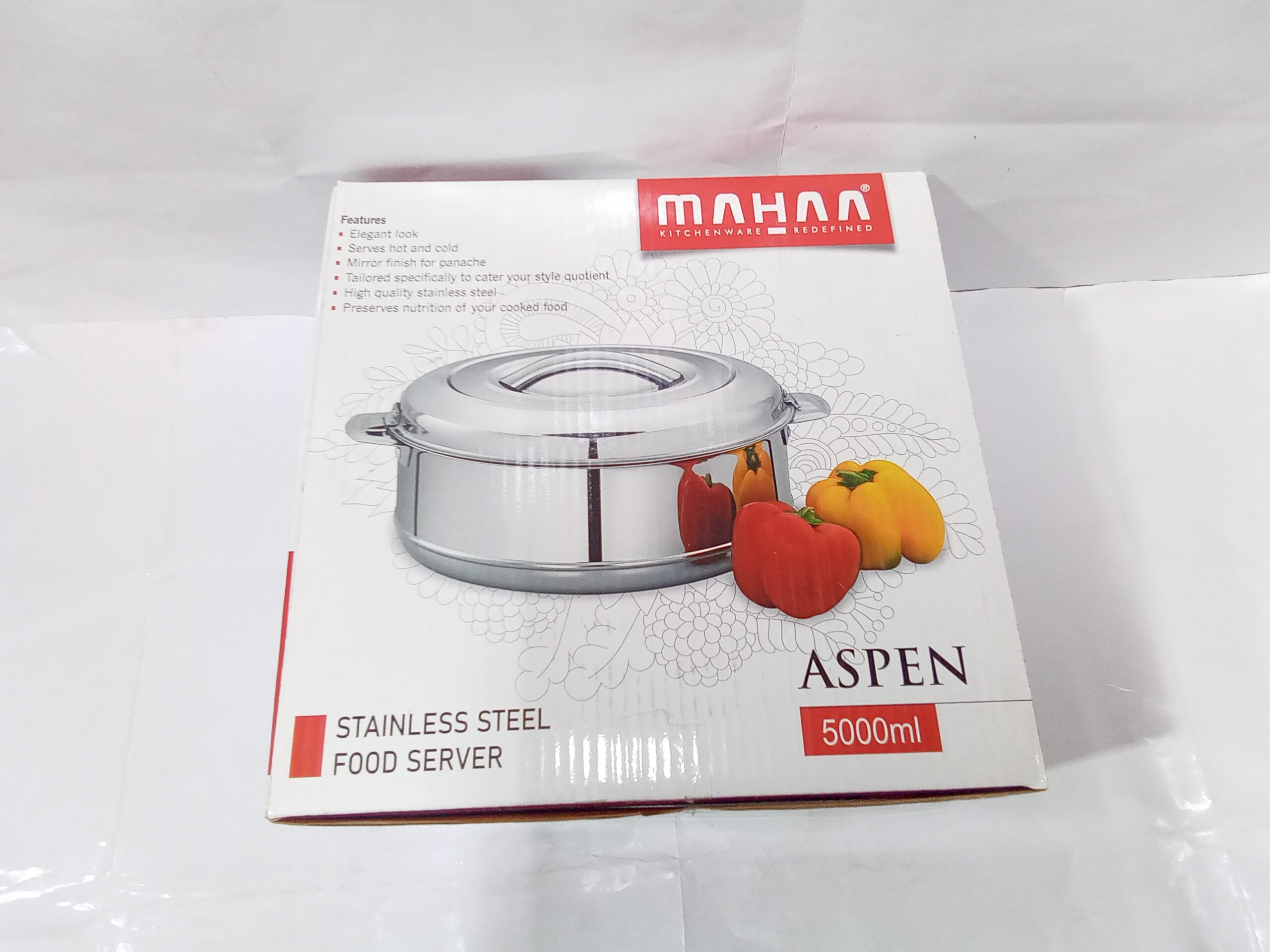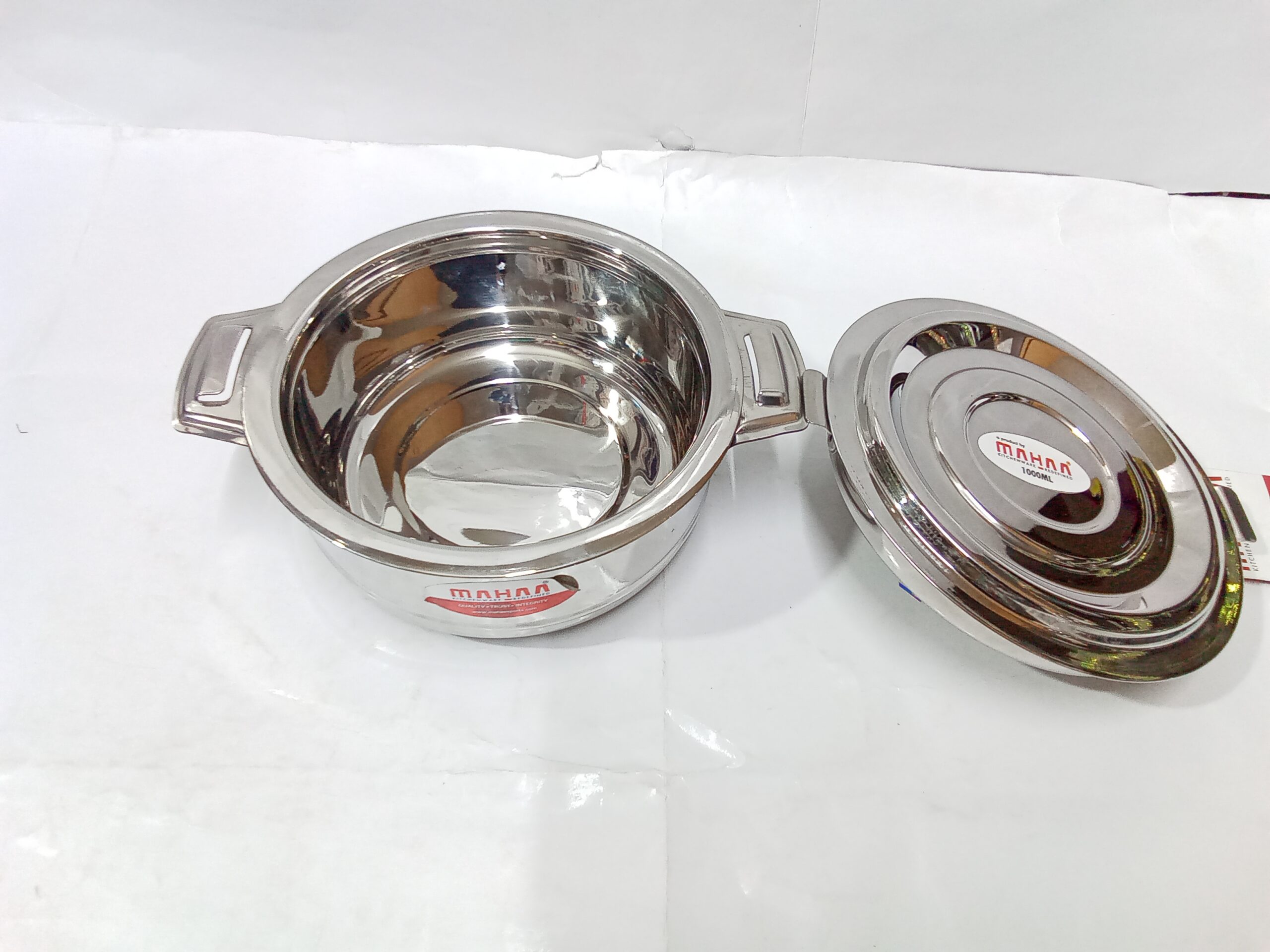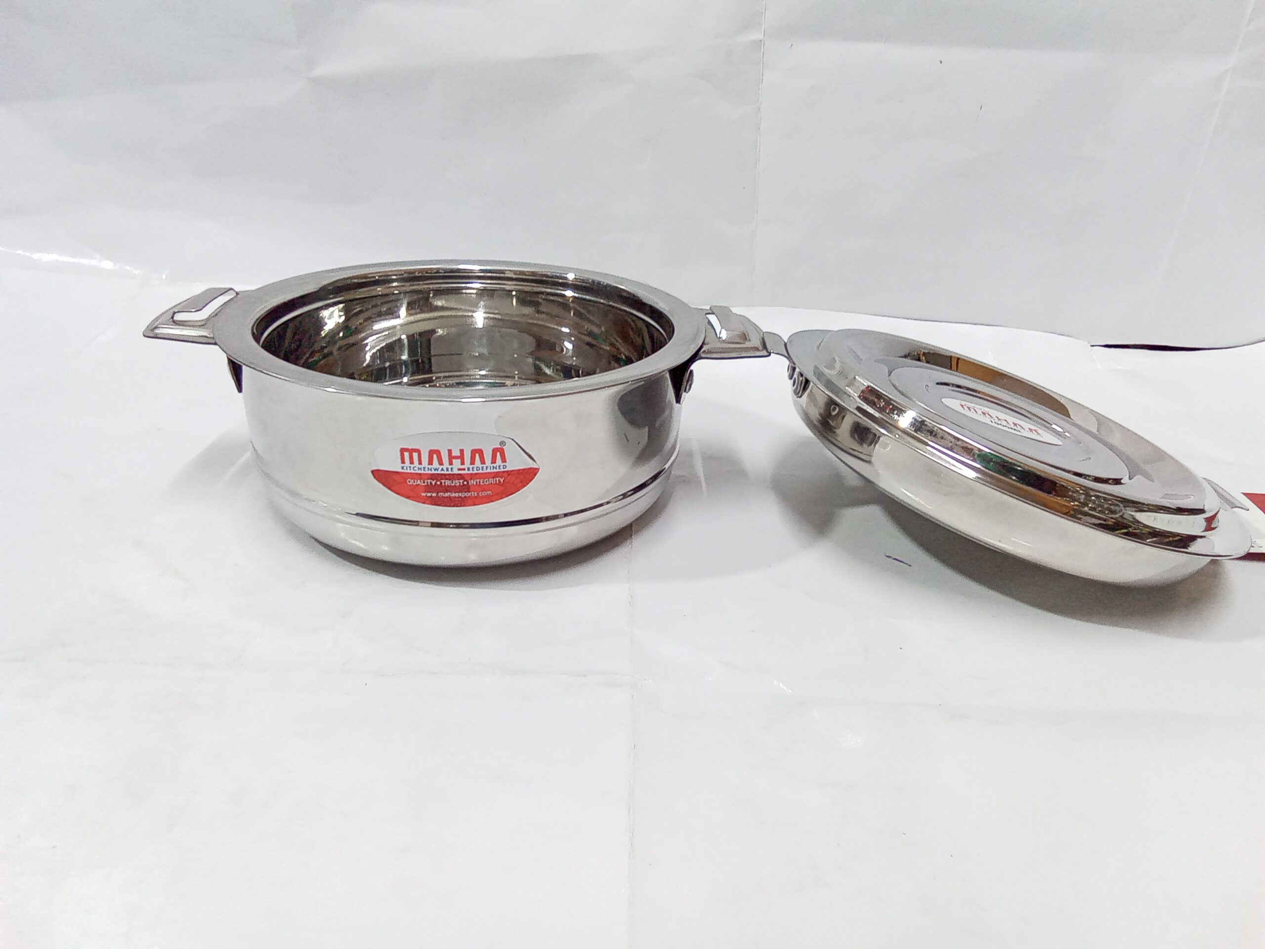 Mahaa Stainless Steel Aspen Casseroles. These are double-walled, insulated hot pots designed to keep food warm and fresh for several hours.