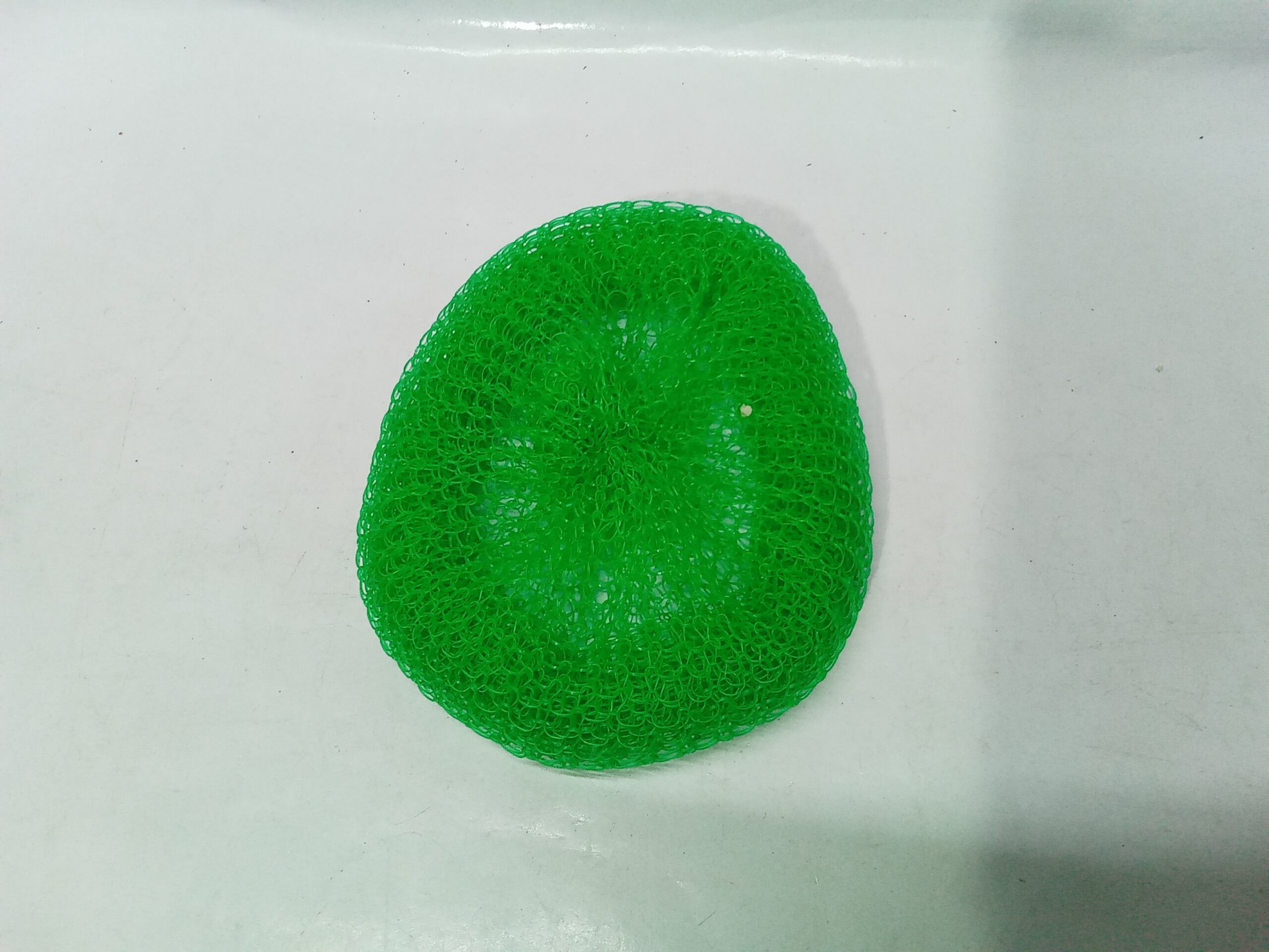 green plastic cleaning scrubber.