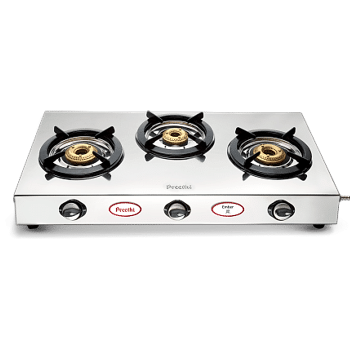 Package Contents: 3-Pieces Heavy Duty Brass Burner, 3-Pieces Gas Control Knob, 3-Pieces Vitreous Enamelled Pan Support, 4-Pieces Rubber Leg, 1-Piece Lighter Holder Clamp, 1-Piece Instructional Manual, 1-Piece Customer Care List and 1-Piece Warranty Card