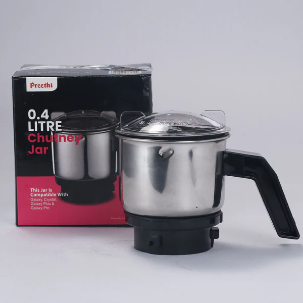 durable, 0.4โ0.5 liter stainless steel replacement jar designed for Preethi Galaxy, Crystal, and Spice mixer grinders.
