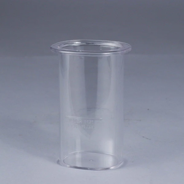• Design:ย A tall, cylindrical, transparent body that allows the user to see the food being pushed. It typically fits into a larger feeder tube assembly as part of a dual-pusher system.