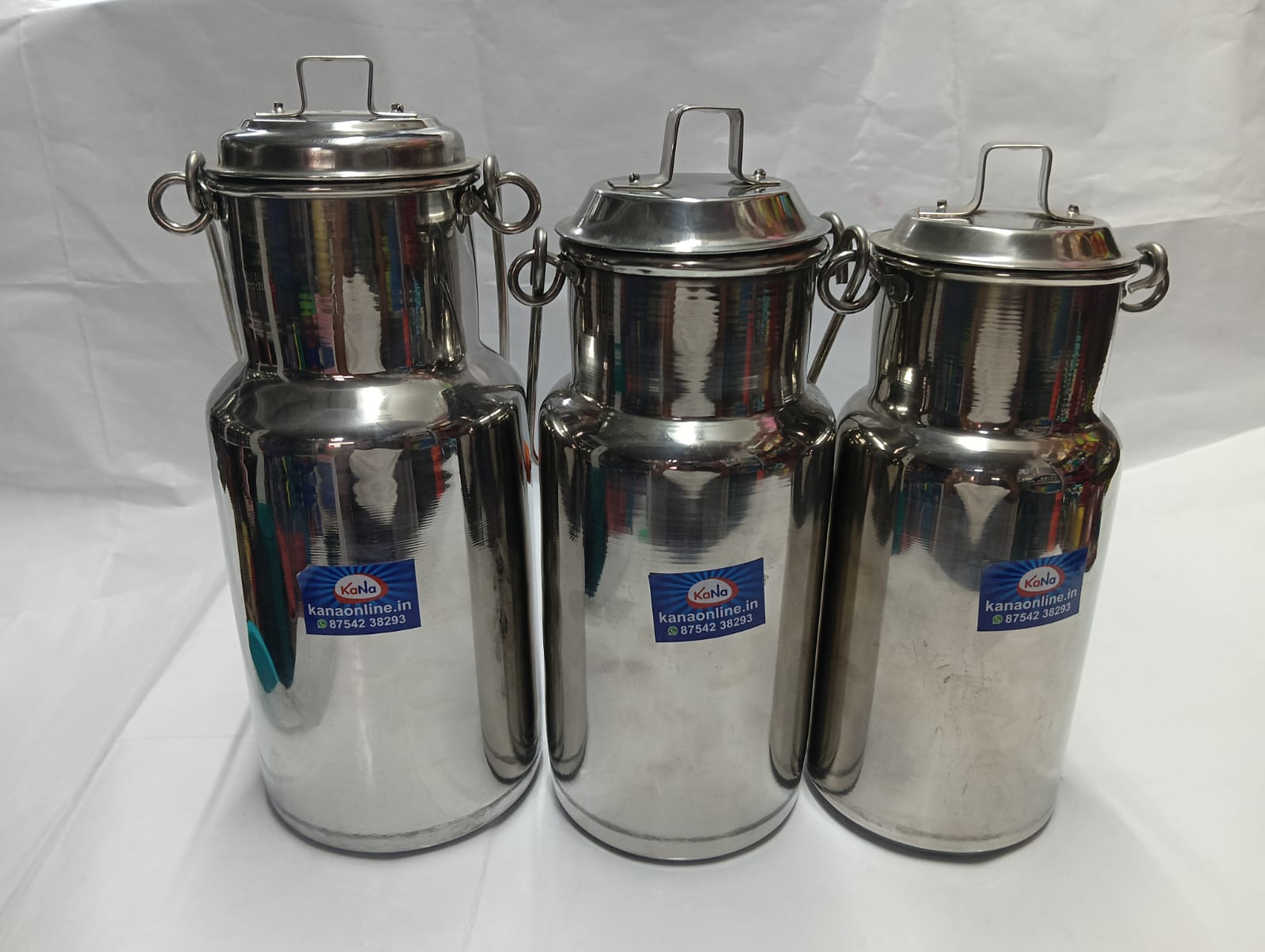 Crafted from high-quality, food-grade stainless steel, these milk cans (also known as milk tankers or paal sombu) feature a traditional cylindrical design with a narrowed neck to prevent splashing. Each can comes with a snug-fitting lid equipped with a sturdy top handle, and a reinforced side bail handle for effortless carrying. The high-gloss mirror finish ensures a premium look while making the interior easy to clean and sanitize.