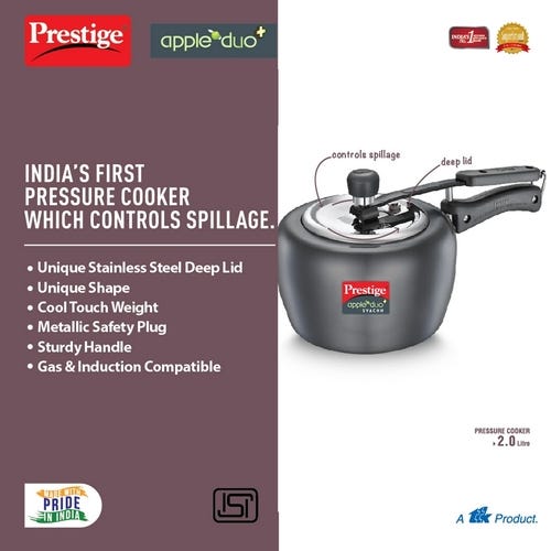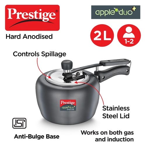 Prestige Apple Duo Plus Hard Anodised Spillage Control Pressure Cooker 2 L (Black)