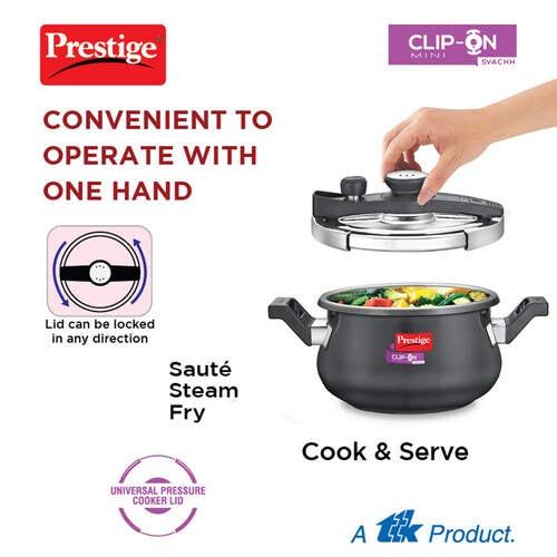 Be the first to review “Prestige Clip-on Mini Svachh Hard Anodised Spillage Control Handi Pressure Cooker with Glass Lid, 3 L (Black)”