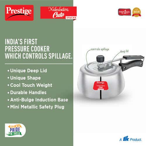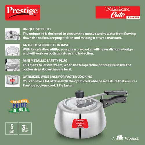 Prestige Nakshatra Cute Svachh Aluminium Gas and Induction Compatible Pressure Cooker, 3 L (Silver)