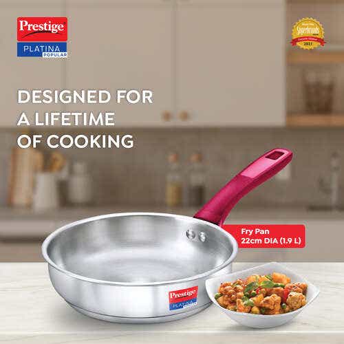 Prestige Platina Popular Stainless Steel Unique Impact Forged Bottom Fry Pan 22cm (1.9 L) (Silver)