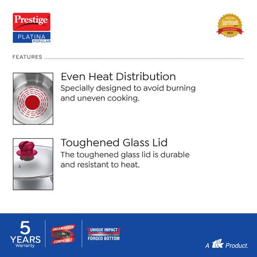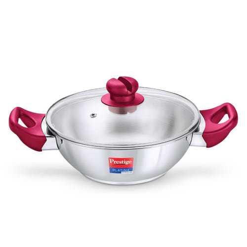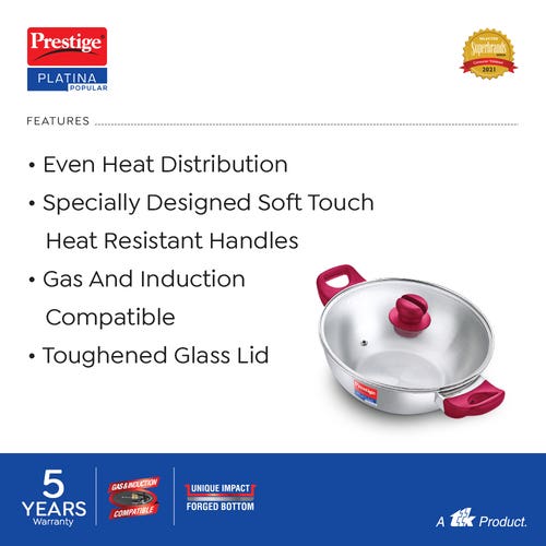 Be the first to review “Prestige Platina Popular Stainless Steel Unique Impact Forged Bottom Kadai with Toughened Glass Lid, 28cm (4.6 L) (Silver)”
