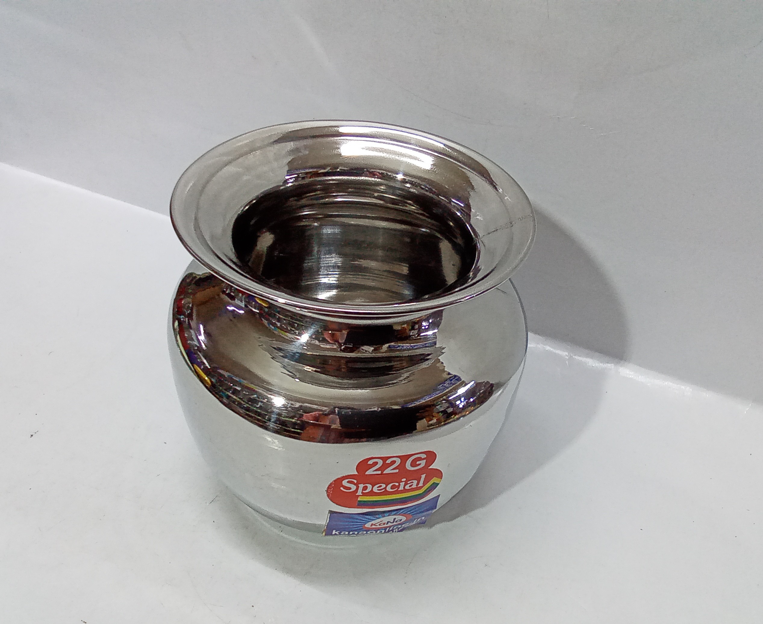 stainless steel lotta chembu, a traditional Indian water vessel.