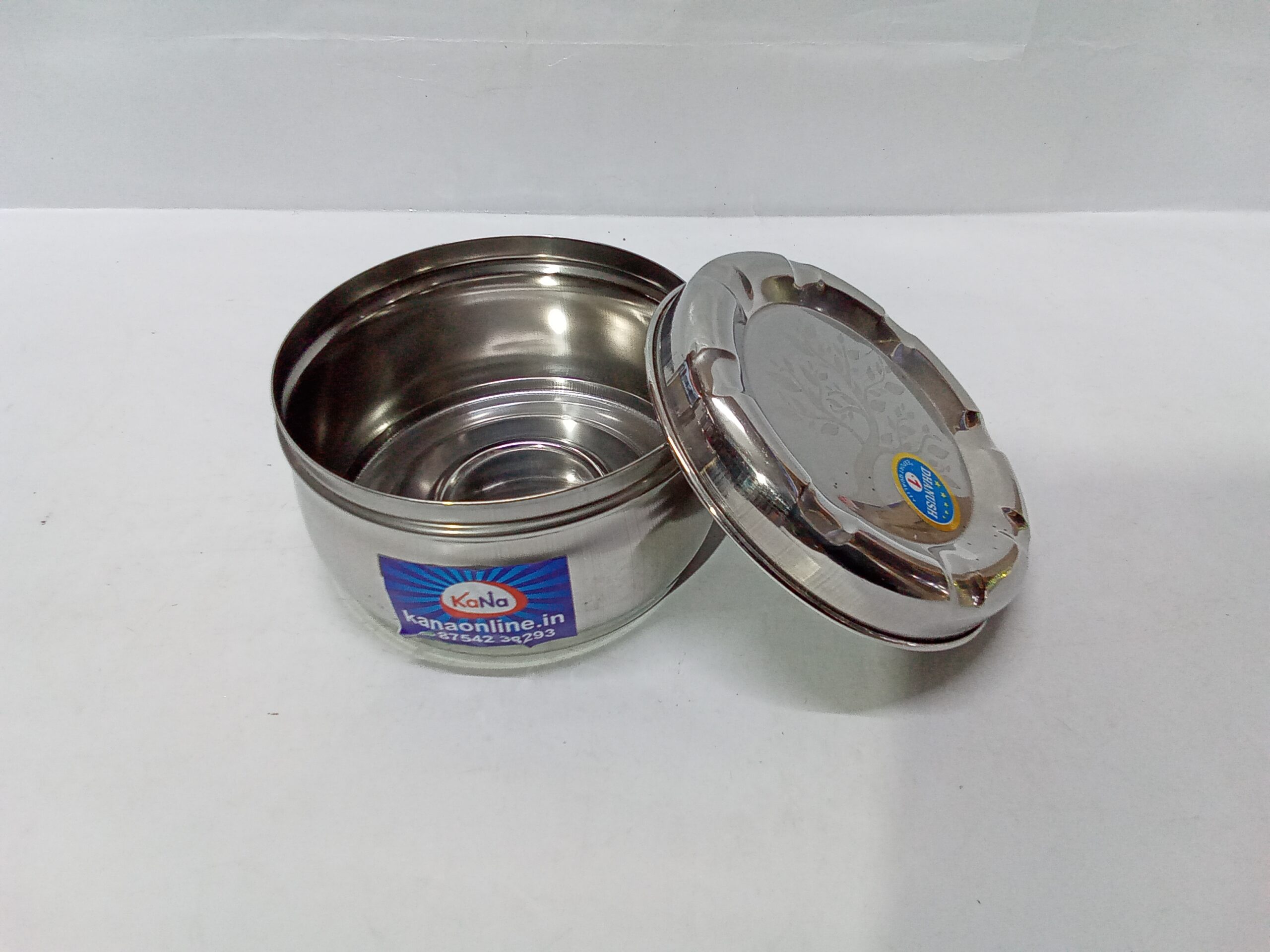 stainless steel lunch box or tiffin box,also known as a poori dabba or roti dabba.Â