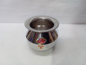 stainless steel deksha or milk pot (handi). This type of pot is commonly used in South Indian cooking for preparing dishes like milk and rice meals.