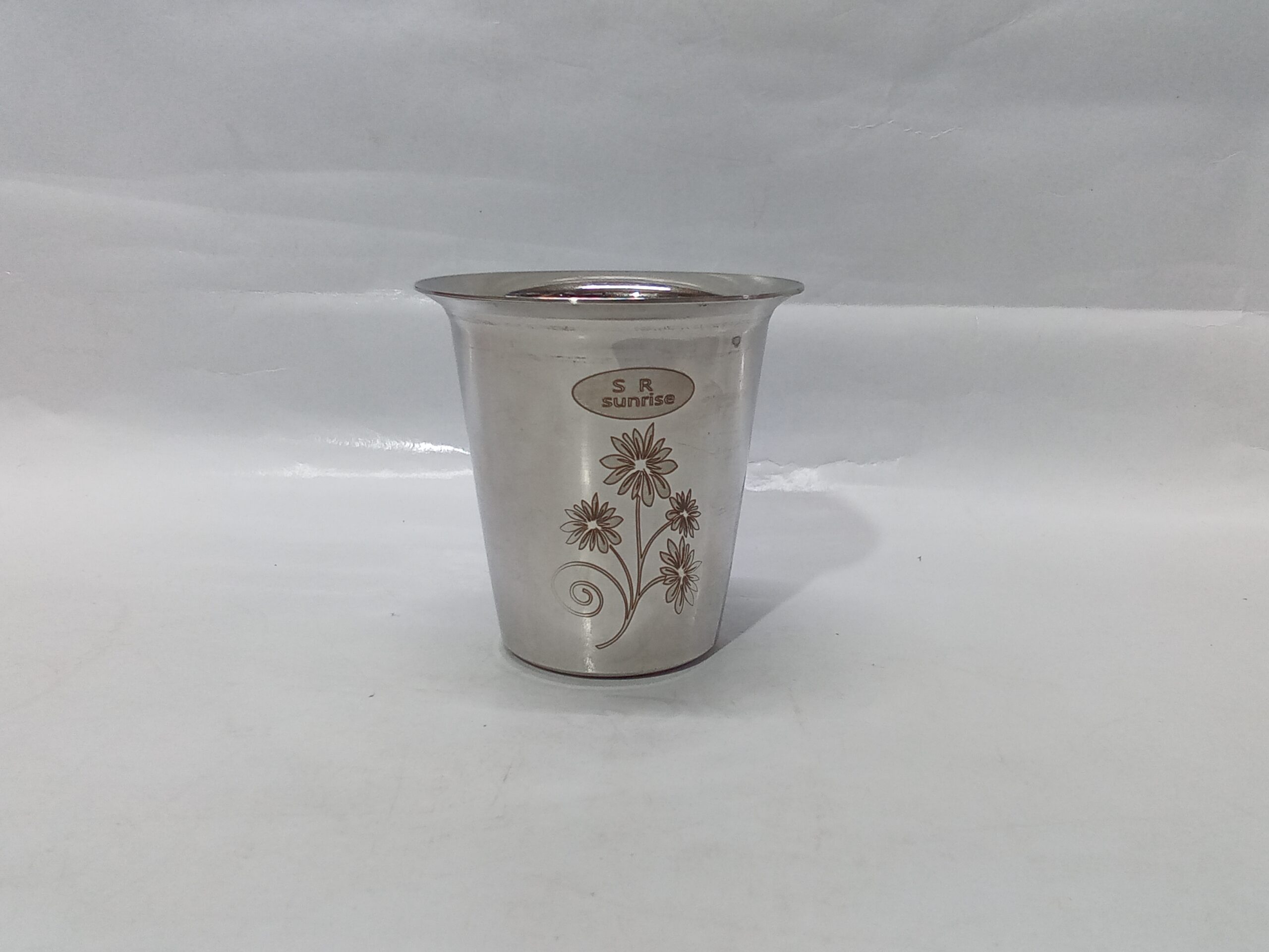 stainless steel tumbler or drinking glass.
