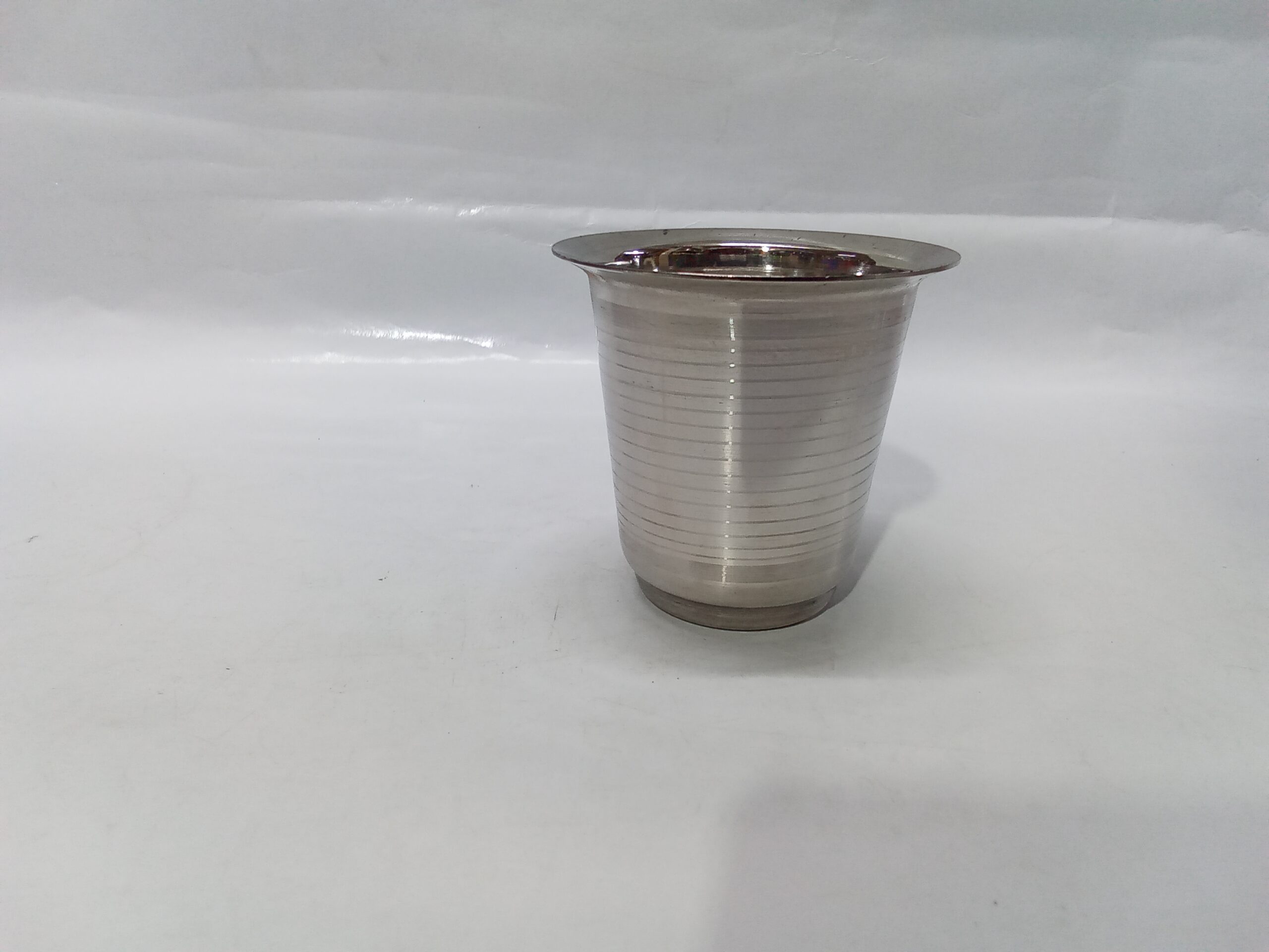 stainless steel tumbler or drinking glass.