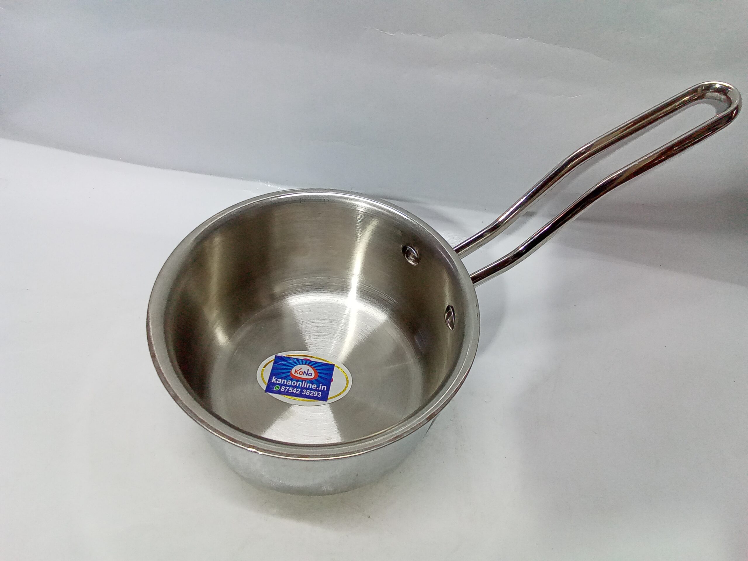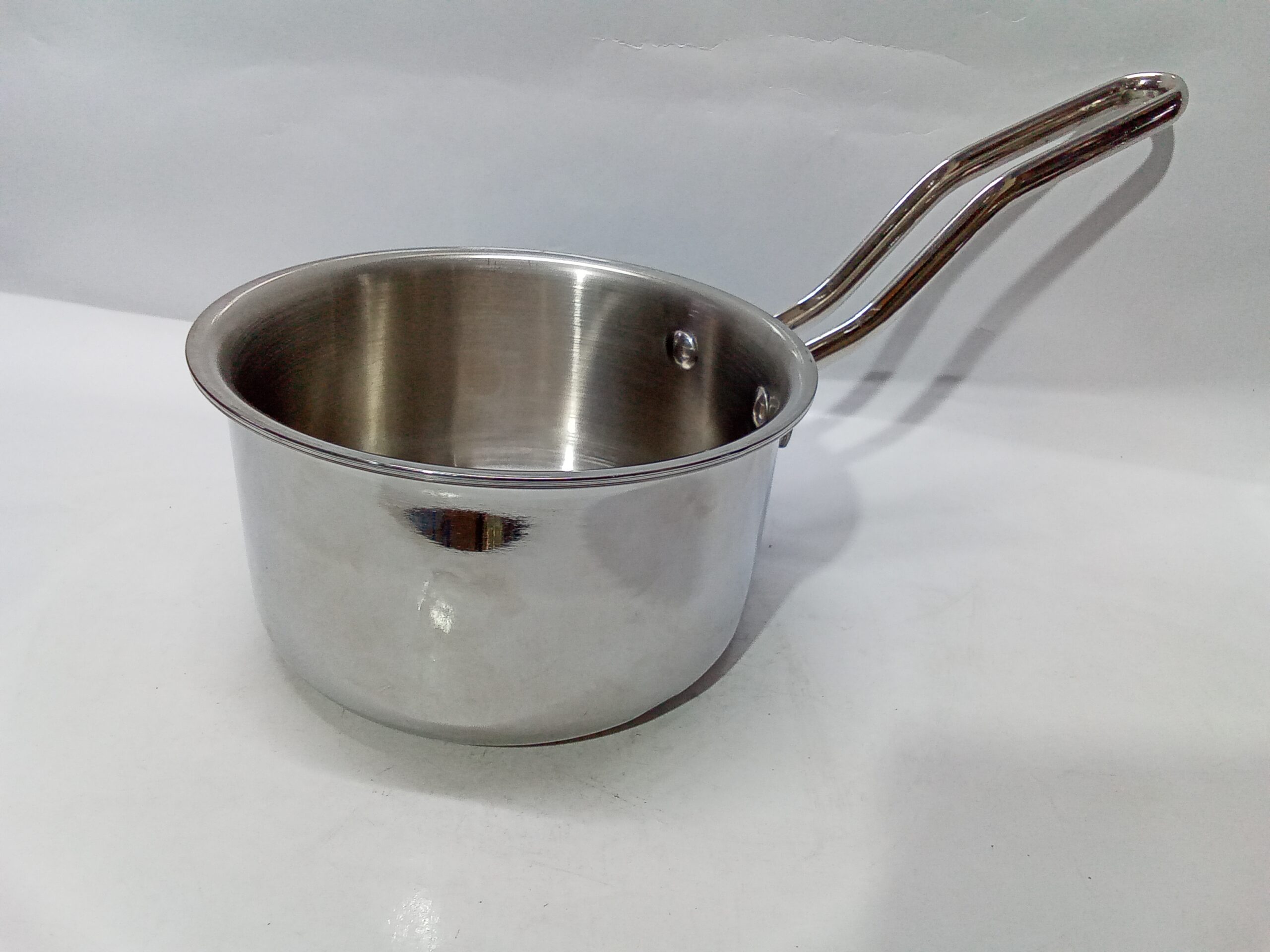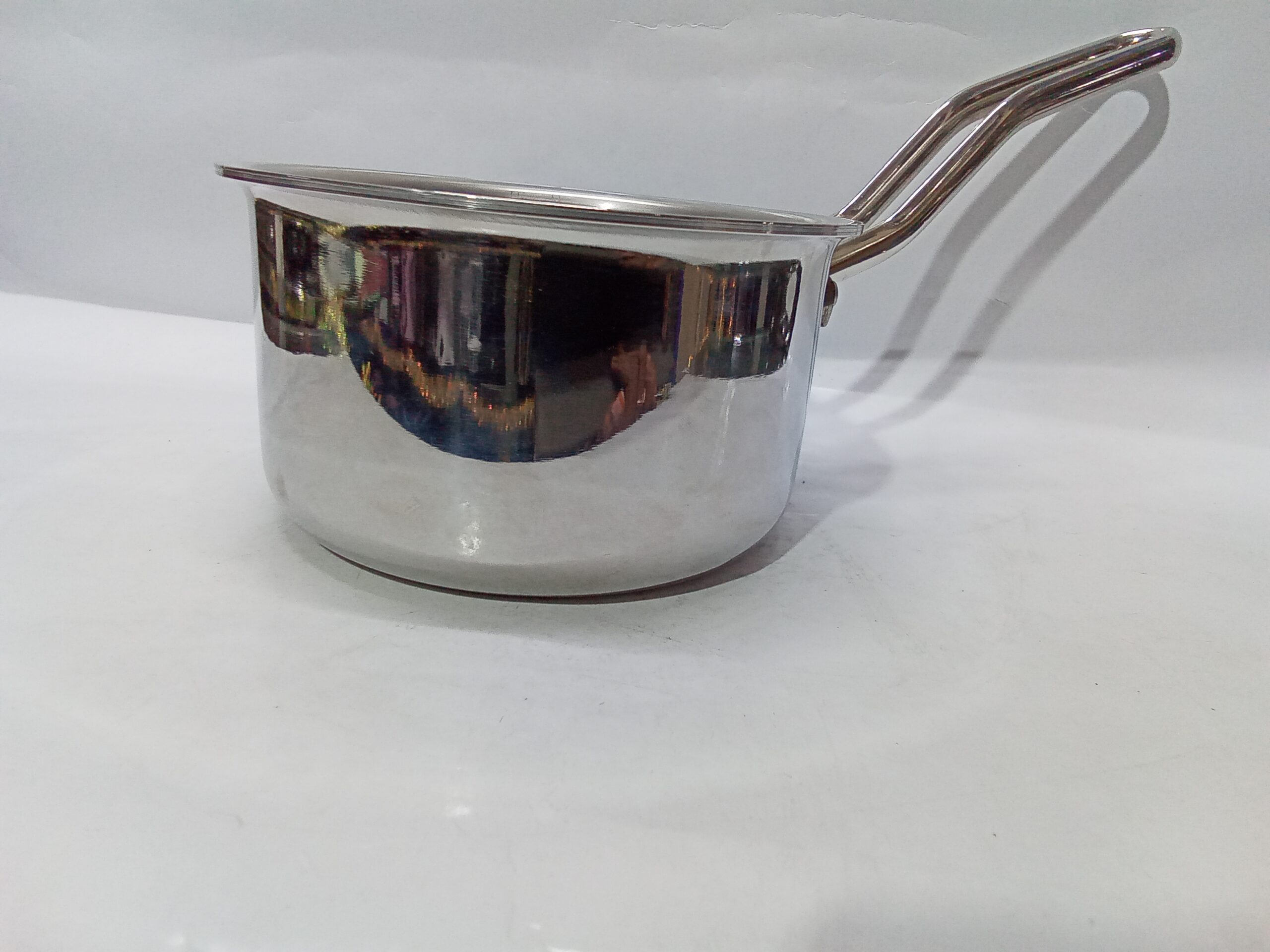 Cook with precision in our Stainless Steel Sauce Pan Made from high-quality stainless steel, this sauce pan is perfect for heating sauces, melting butter, and cooking delicate dishes. Its durable construction ensures even heat distribution and easy cleaning.