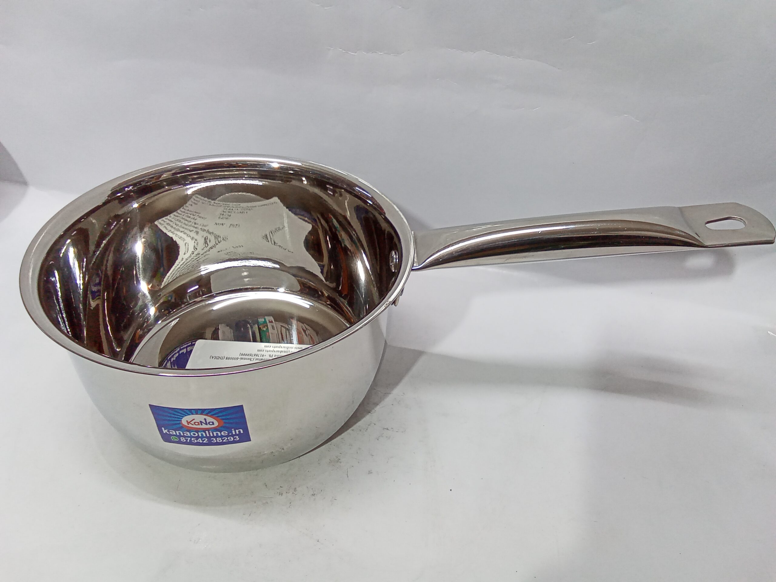 Cook with precision in our Stainless Steel Sauce Pan Made from high-quality stainless steel, this sauce pan is perfect for heating sauces, melting butter, and cooking delicate dishes. Its durable construction ensures even heat distribution and easy cleaning.